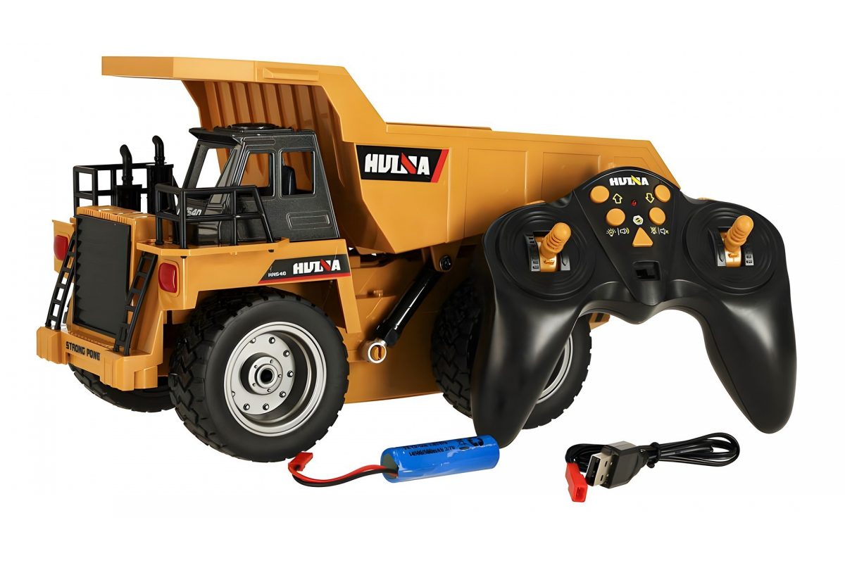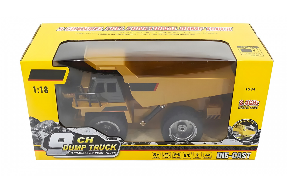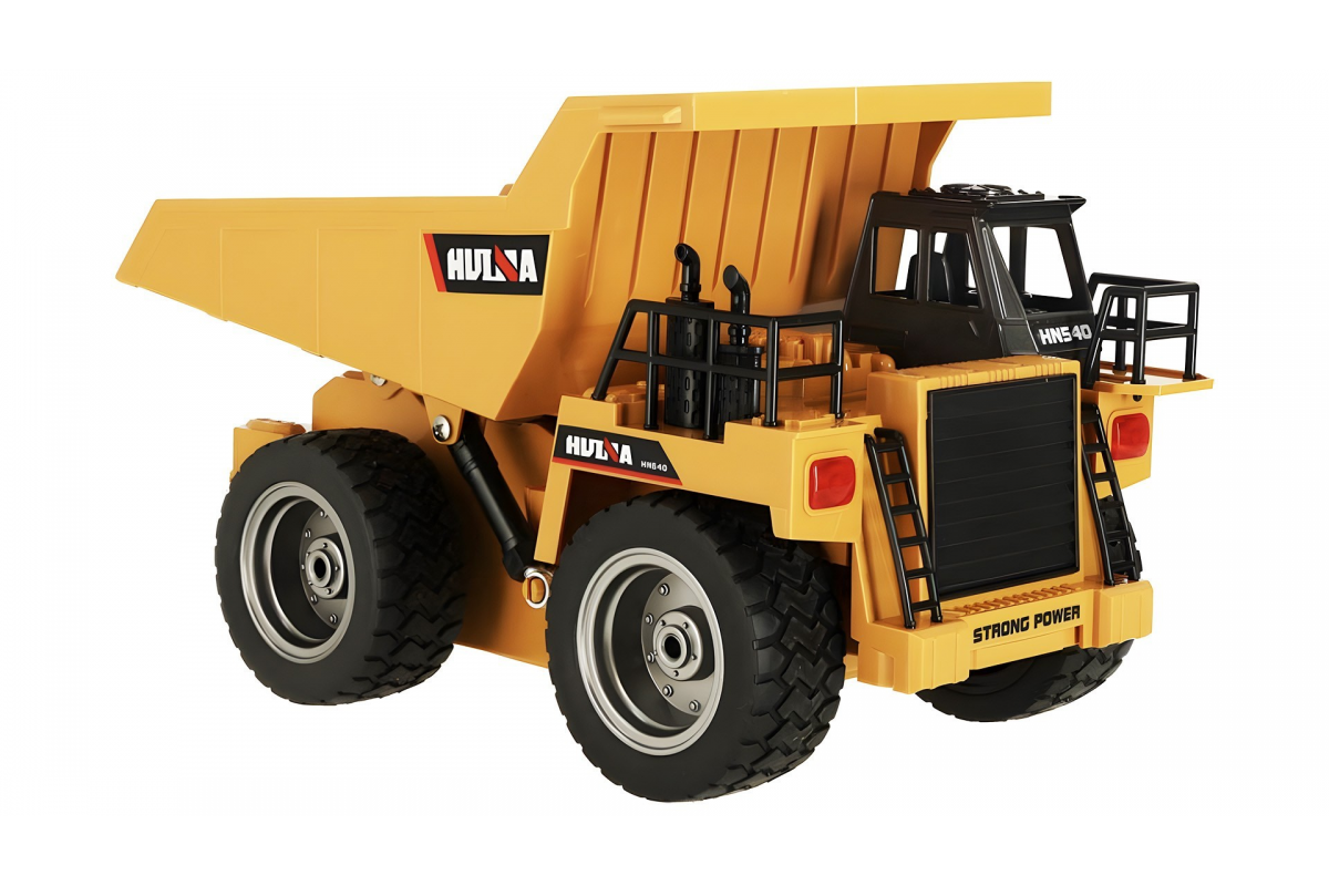 Радиоуправляемый карьерный самосвал HUINA 1:18 - HN1534 - это радиоуправляемая модель, которая является миниатюрной копией карьерного самосвала. Обладает вместительным кузовом, а также отсеками в передней части кабины, что добавляет устройству возможностей по транспортировке игрушек и мелких элементов.