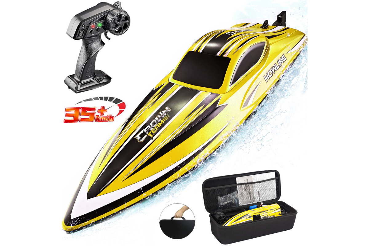 Радиоуправляемый катер Chasing Waves с сумкой (41 см, 35 км/ч) - HJ818-YELLOW-BAG - этот великолепный катер HJ818 несмотря на свой небольшой размер, может достичь максимальной скорости 35 км/ч, благодаря мощному коллекторному электродвигателю! Катер поставляется в полностью собранном виде и со всем необходимым для первого запуска.