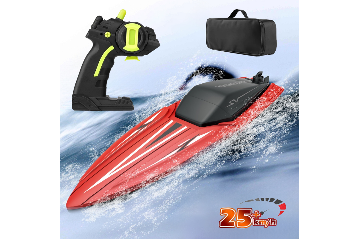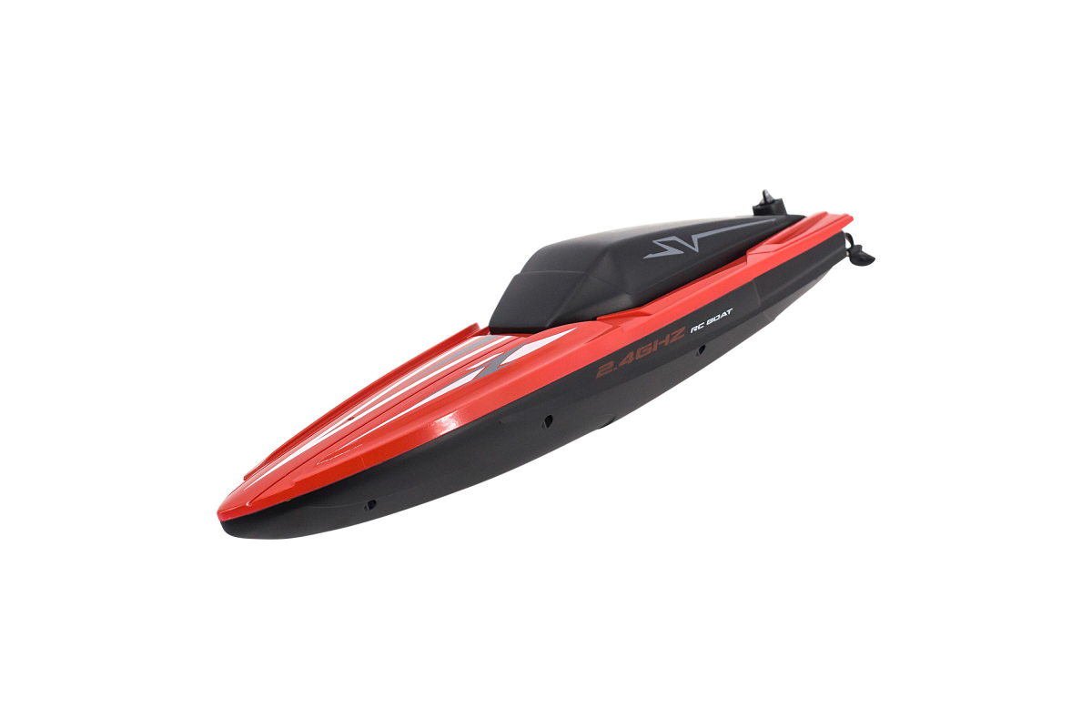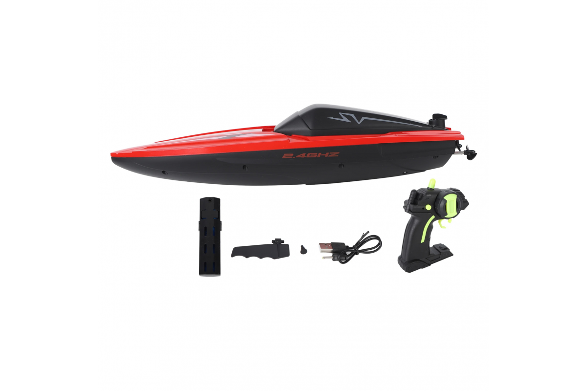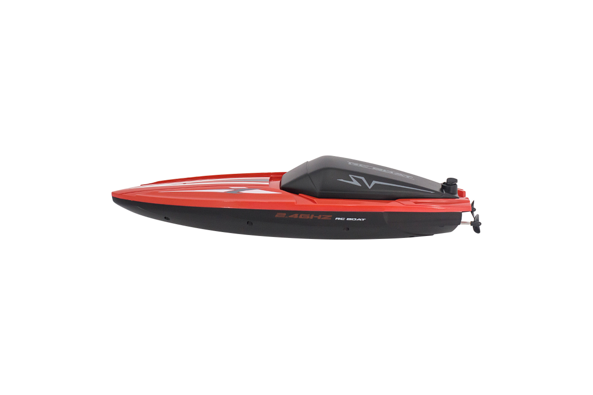 Высокие технические характеристики катера дополняются качественной аппаратурой управления пистолетного типа с радиусом действия до 80 метров. Частота управления 2.4 ГГц позволяет плавать нескольким катерам рядом одновременно и устраивать гонки.
