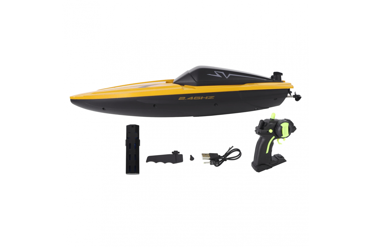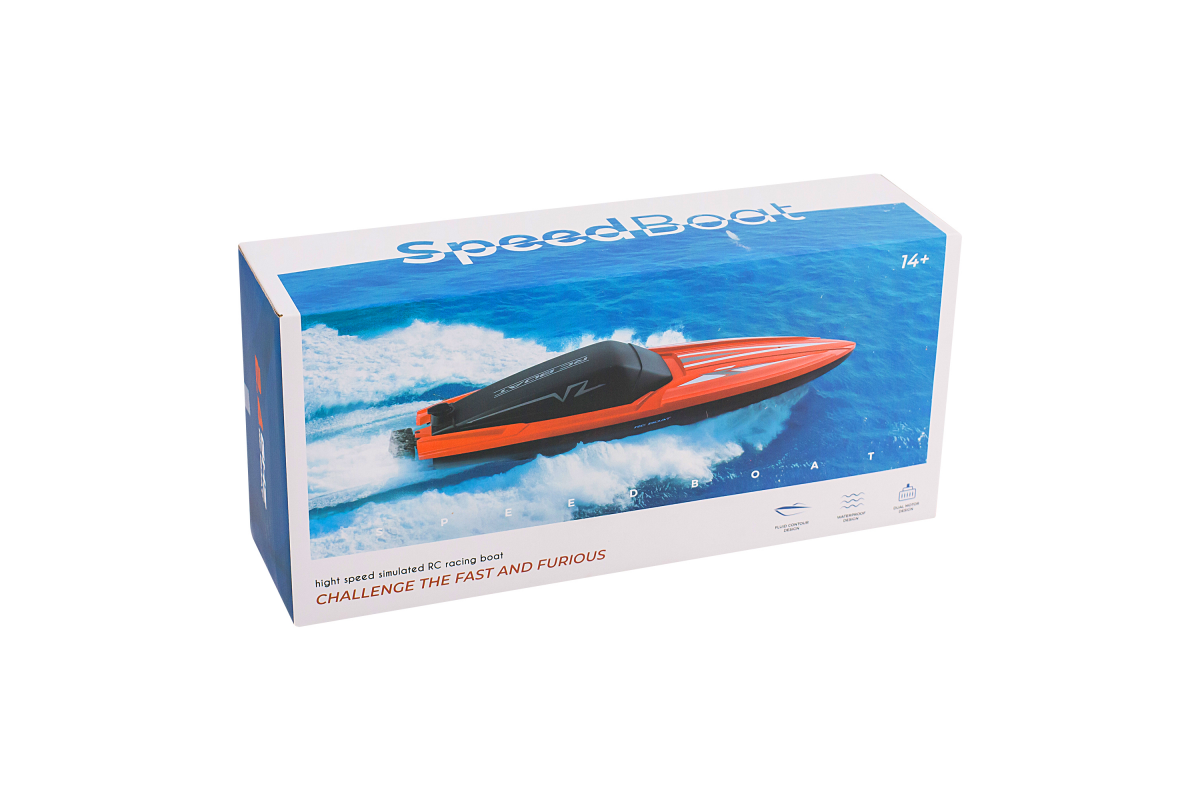Высокие технические характеристики катера дополняются качественной аппаратурой управления пистолетного типа с радиусом действия до 80 метров. Частота управления 2.4 ГГц позволяет плавать нескольким катерам рядом одновременно и устраивать гонки.