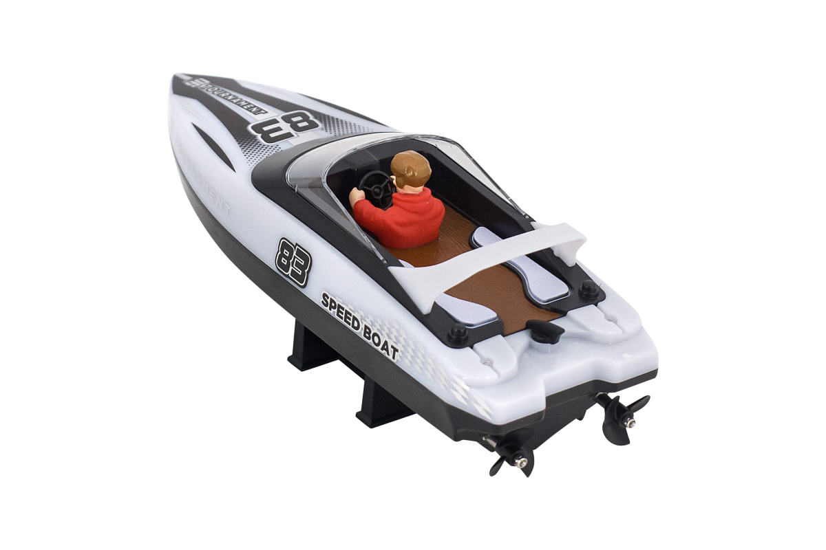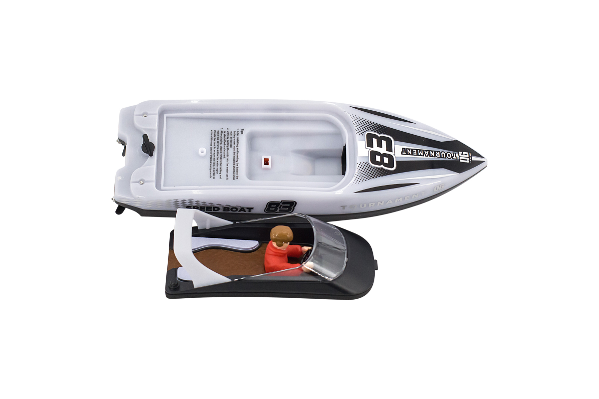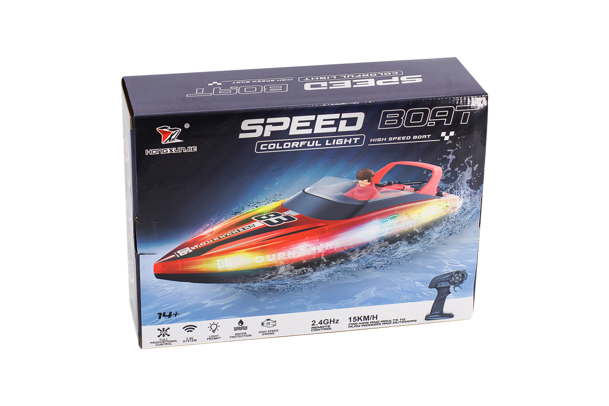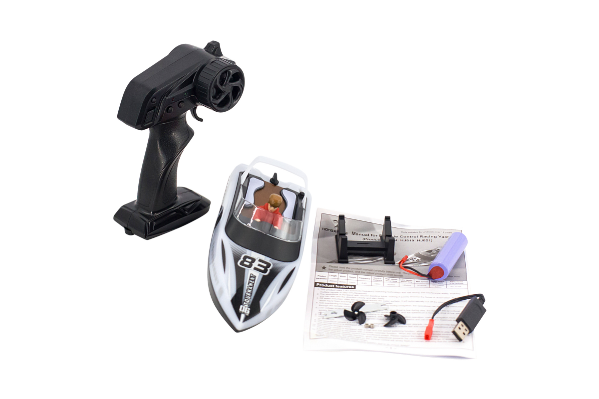 Катер HJ821 легок в управлении. Имеет две скорости движения. Пульт управления пистолетного типа работает на частоте 2,4 GHz, что гарантирует качественный сигнал и полную защиту от помех.