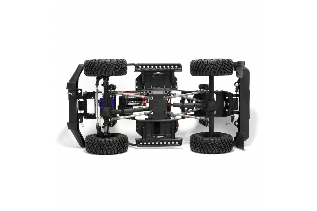 Внедорожник подготовлен для эксплуатации в сложных условиях. Электронный регулятор скорости с влагозащитой, сервопривод рулевого управления с защитой от воды и песка, карданный постоянный полный привод 4WD, защита трансмиссии от попадания песка и камней. Вездеходные колеса с противоскользящим покрытием позволяют внедорожнику подниматься по склонам и преодолевать каменистые поверхности. Управление - пропорциональное.