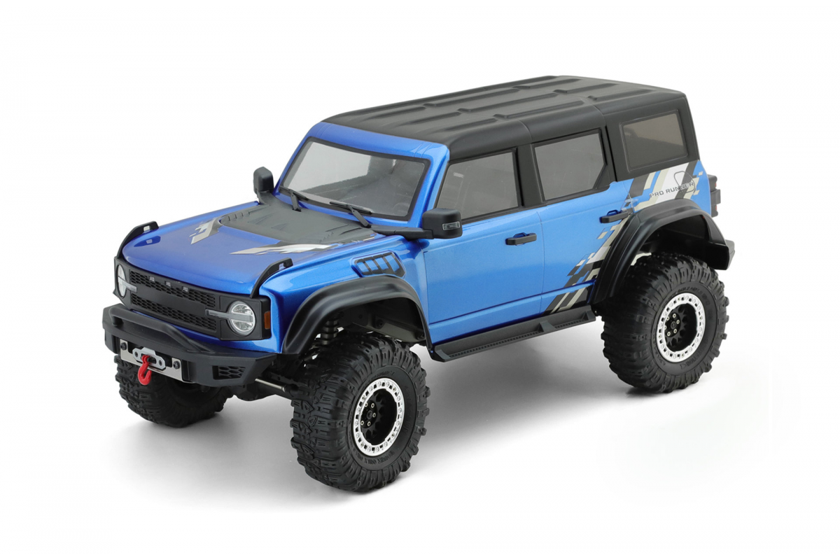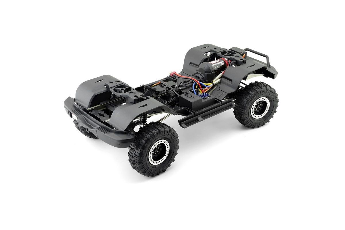 Модель имеет портальные мосты, двухскоростную коробку передач, 4WD, функцию блокировки задней оси и свободно переключаемый передний привод, режим разных скоростей между передним и задним приводом для восхождения. Pro Runner оснащен на заводе лебедкой с функцией разблокировки, задний мост в корпусе для поперечной устойчивости, светодиоды, 6-канальный передатчик, двигателем с очень плавным ходом.