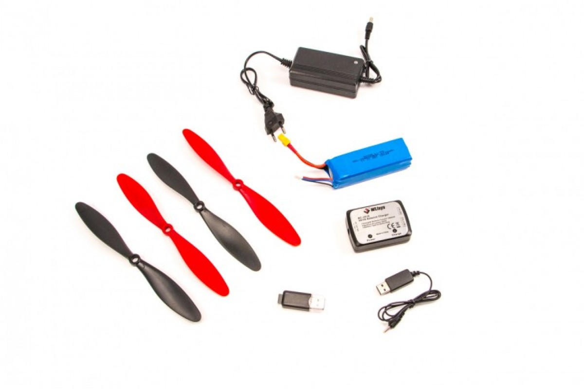 Комплектация: Коптер, пульт управления, аккумулятор, зарядное устройство, комплект запасных винтов, инструкция.