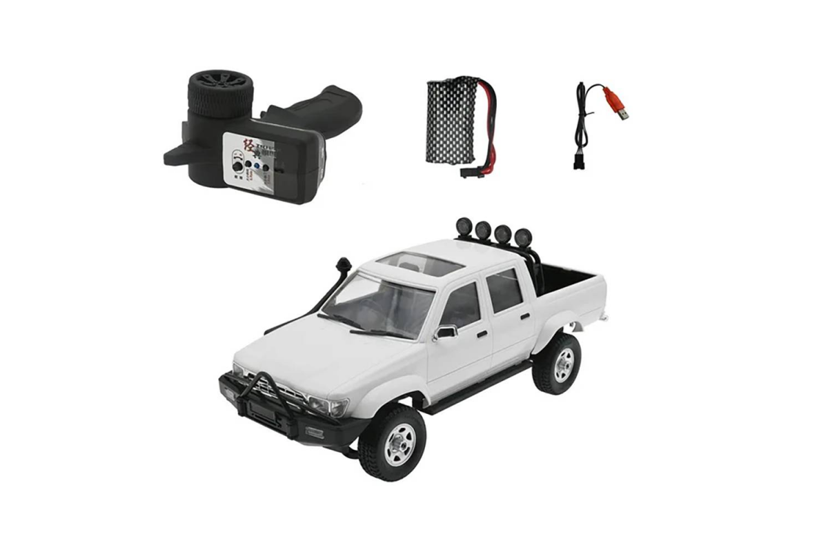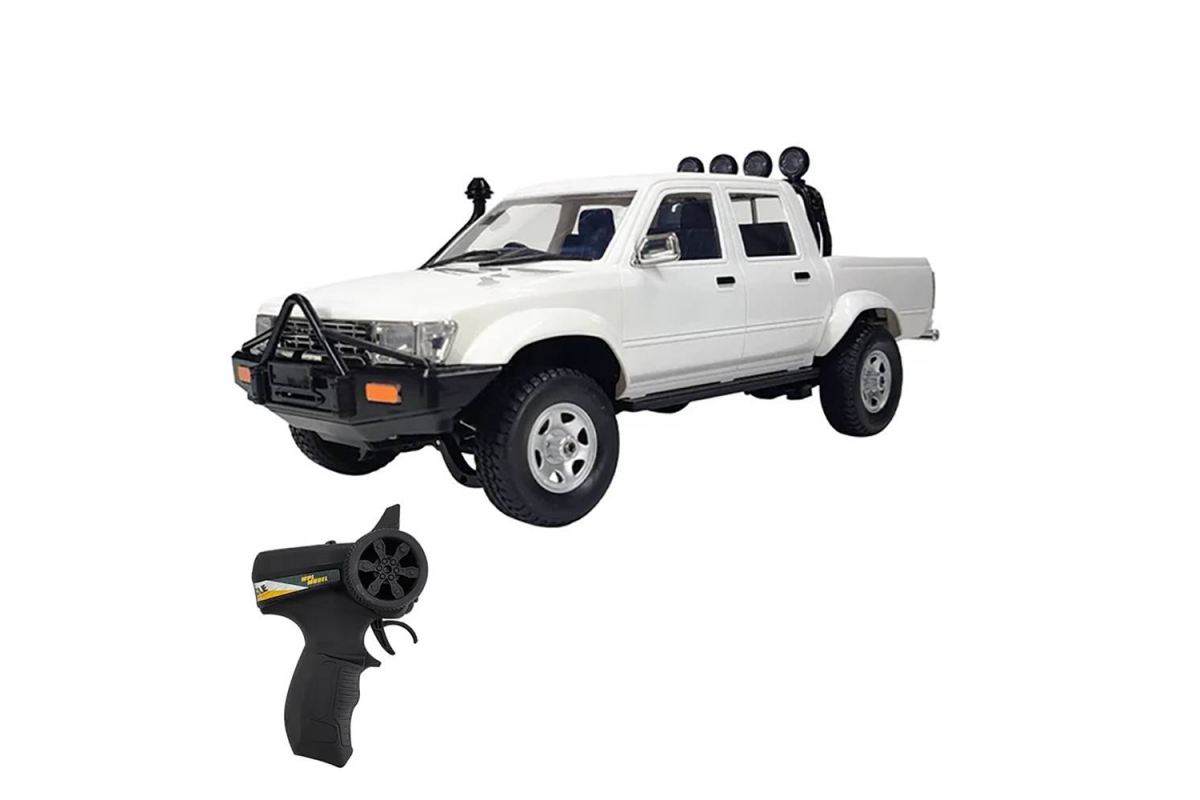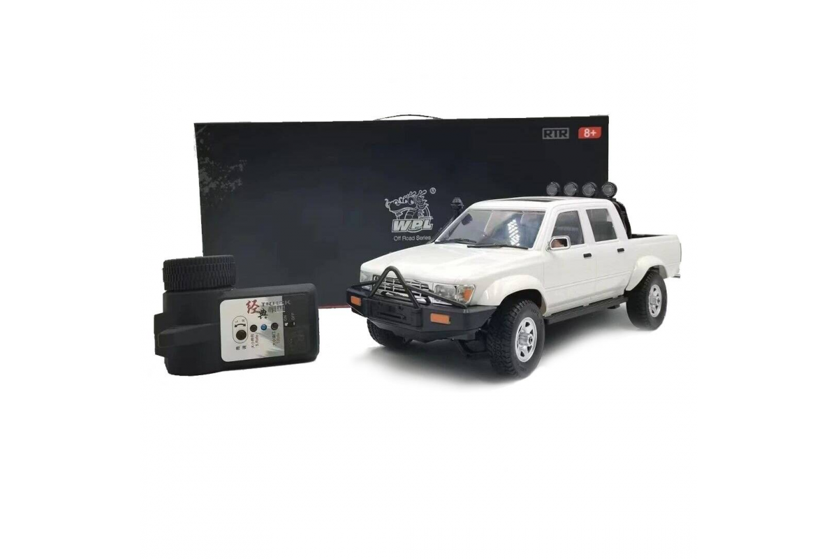 Радиоуправляемый пикап WPL D-62-1 Hilux Crew Cab 2WD 1:16 - WPLD-62-1 - это пикап на пульте управления, копия настоящего автомобиля Hilux Crew Cab от компании WPL в масштабе 1:16. Машинка оснащена коллекторным двигателем. Задний привод с мягкими, но прочными противоскользящими шинами обеспечивают пикапу высокую проходимость в условиях бездорожья. Прекрасная детализация позволяет разглядеть часть салона через стекла. Машина не испугается даже крутых склонов под углом до 35°, поскольку шины обеспечивают хорошее сцепление. Полного заряда аккумулятора 600 mAh хватит на 20-30 минут запуска машинки на дистанции до 50 м. Управление осуществляется при помощи идущего в комплекте пульта 2.4GHz.