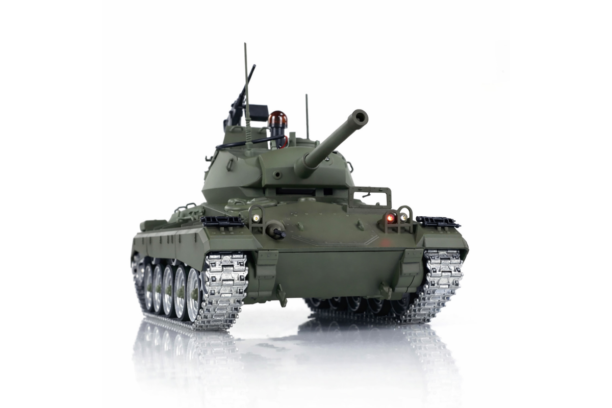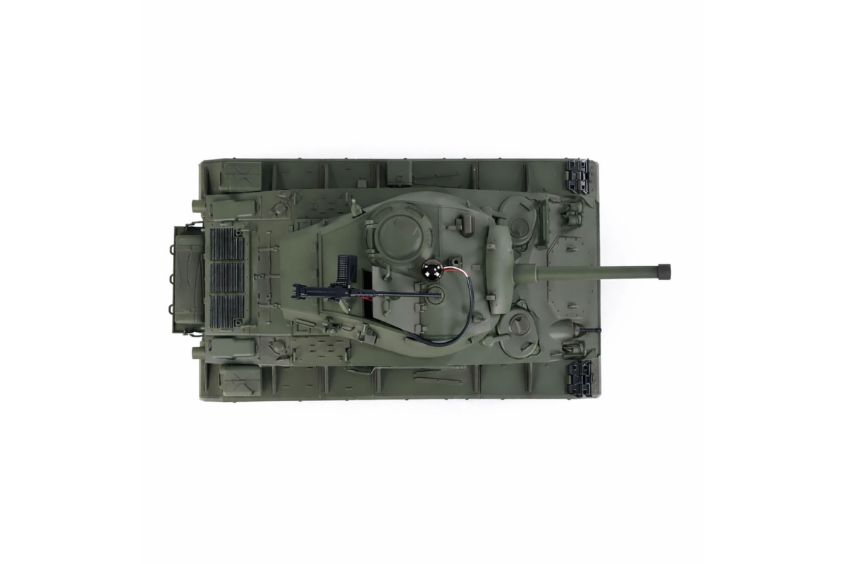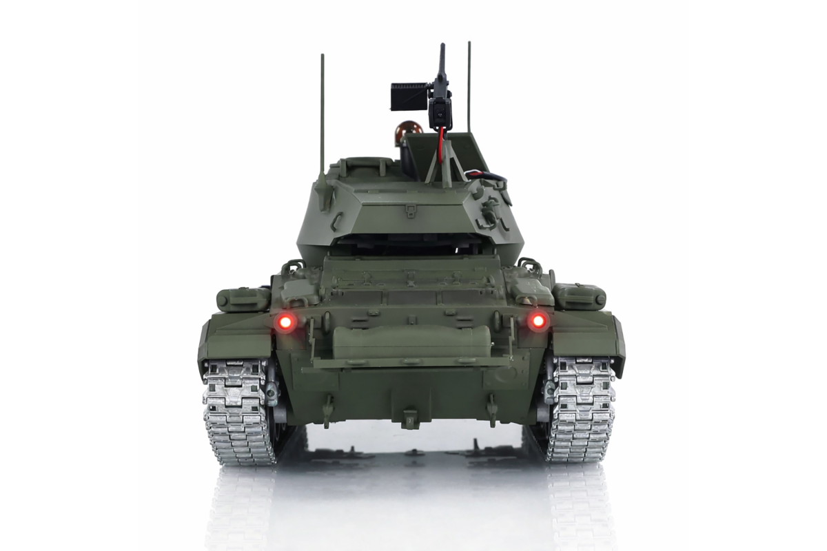 Радиоуправляемый танк M24 Chaffee Upgrade - TD-M2402U - это американский лёгкий танк, разработанный в середине 1940-х годов компанией Cadillac. Опыт боевого применения в Африке лёгких танков М3 и М5 показал, что эпоха лёгких танков с угловатыми корпусами и вертикальной подвеской подошла к концу, их конструкция была признана устаревшей. В 1943 году началась работа над совершенно новой машиной. Техническое задание, помимо усиленного вооружения, предусматривало максимальную массу не более 18 коротких тонн, а также использование корпуса и башни рациональной формы. Первый прототип лёгкого танка под индексом Т24 поступил на испытания в октябре 1943 года. Прототип оказался столь удачным, что немедленно был сделан заказ на 1000 экземпляров данной машины, при этом производство было организовано ещё до его официального принятия на вооружении под индексом M24.