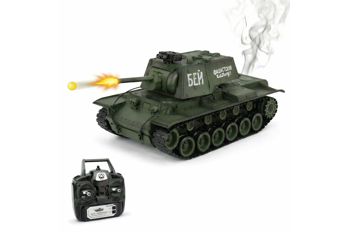 Радиоуправляемый танк R-WINGS Советский КВ-1 - RWG021-844 - радиоуправляемая модель советского танка с пневматической пушкой. Индикатор предупреждения перед выстрелом и разряда аккумулятора. Высокодетализированный кузов с навесным оборудованием. Танк КВ-1 - это настоящая коллекционная модель советского танка, участвовавшего в сражениях во времена Второй мировой войны. Танк в точности повторяет оригинал, имеет навесное оборудование. На танке даже нанесена надпись ''Бей фашистскую гадину'', которую наносили на корпус в Великую Отечественную войну.