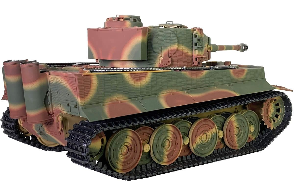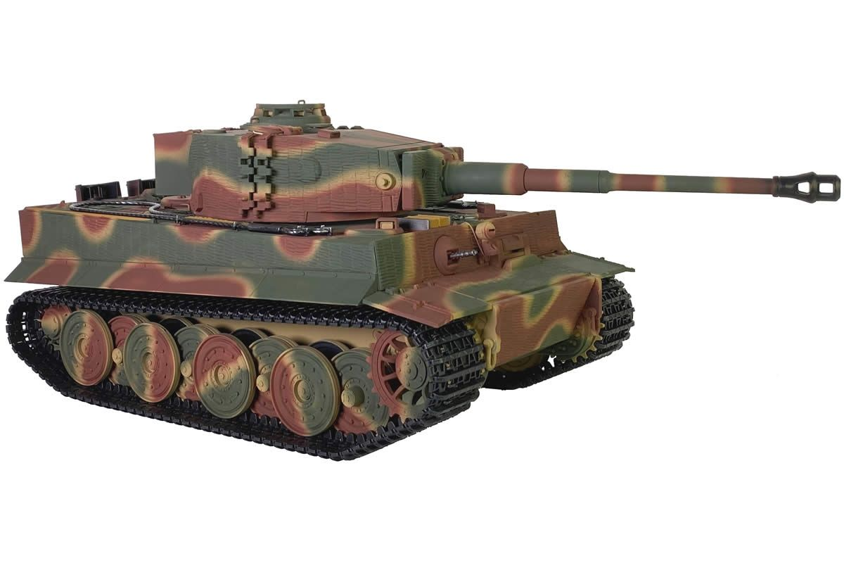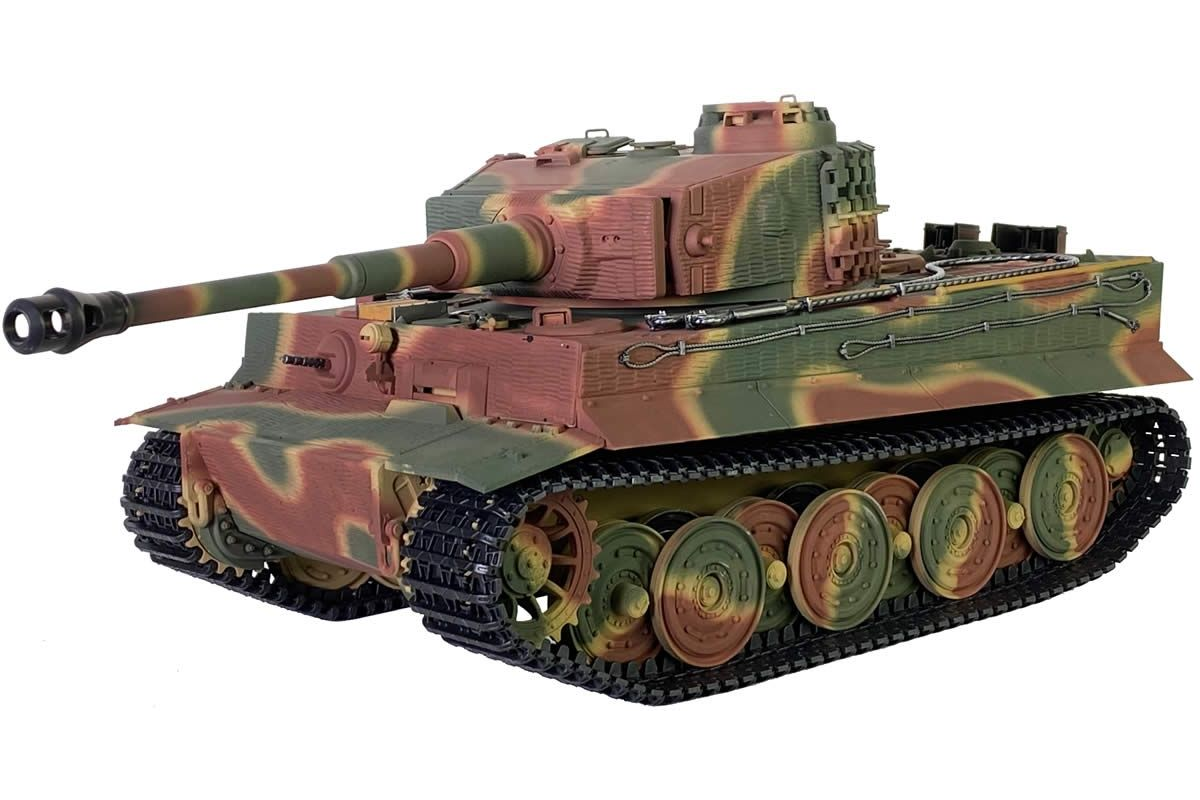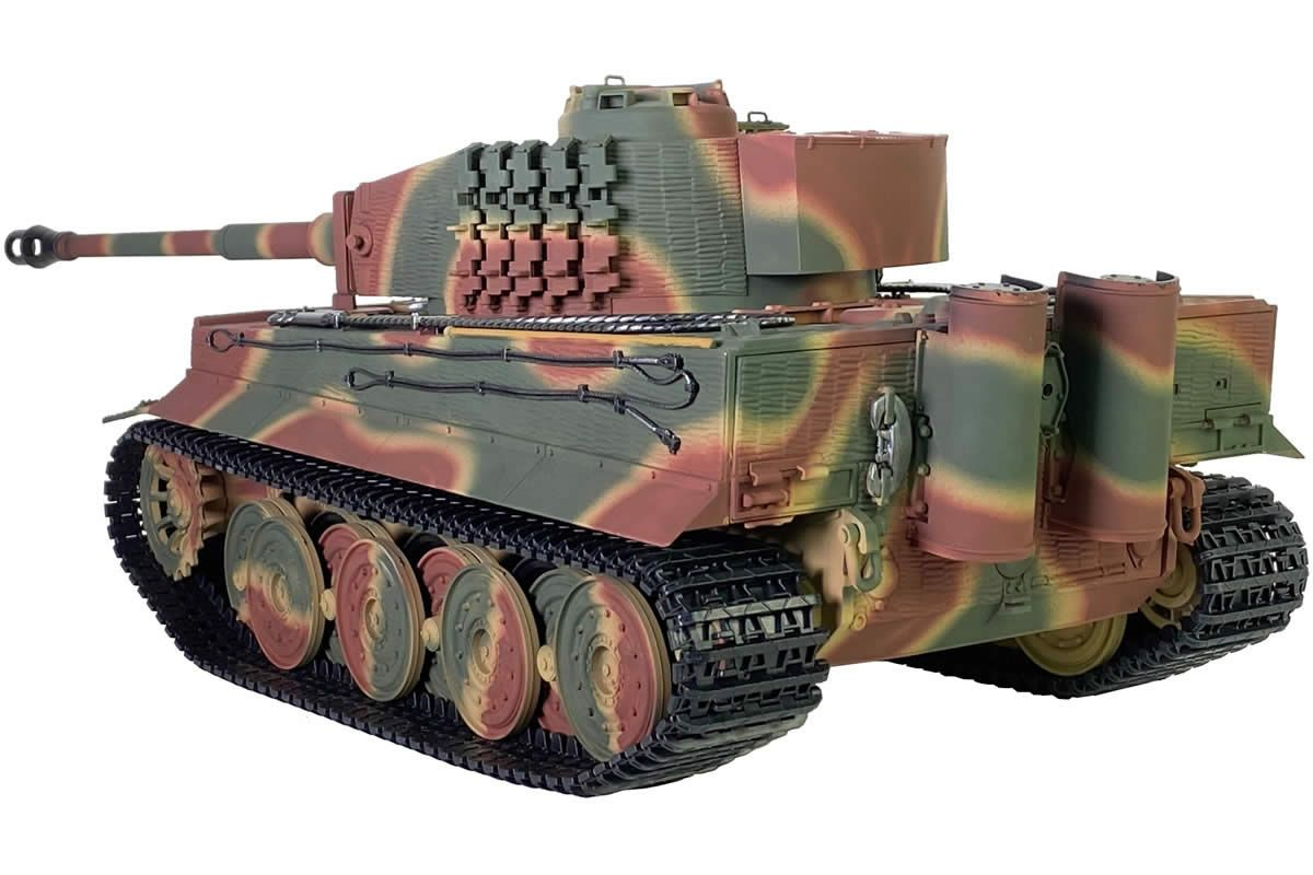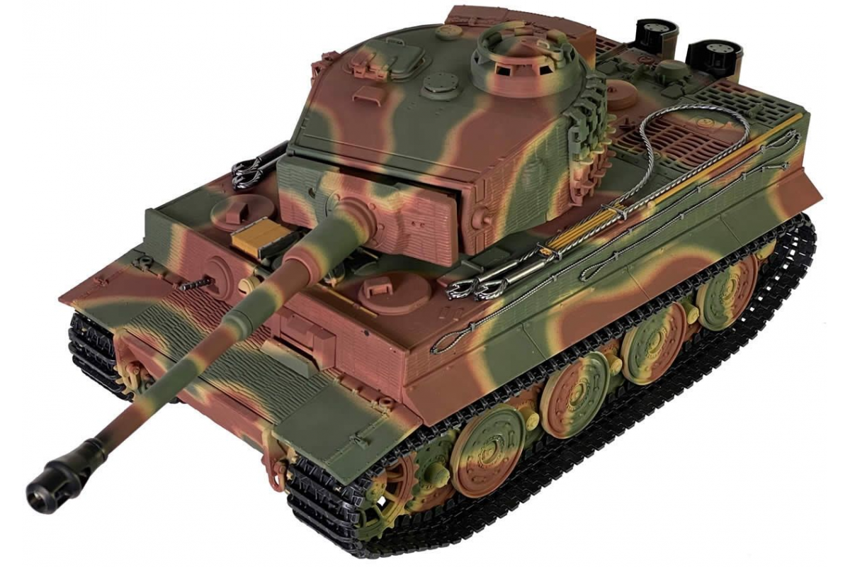 Радиоуправляемый танк Taigen Tiger 1 Германия 1:16 (лесной камуфляж, звук, дым V3) - AS3818-D-CAMO - это полностью функциональная модель в масштабе 1:16 от компании Taigen, имеющая высокий уровень детализации и металлические компоненты. Наиболее заметным является шикарная ручная роспись корпуса, что делает каждый танк оригинальным. В последней версии Тигра включено множество новинок, которые делают танк не только более надежным и долговечным, но и придают ему неповторимый внешний вид, а также открывают простор для дальнейшей модернизации.