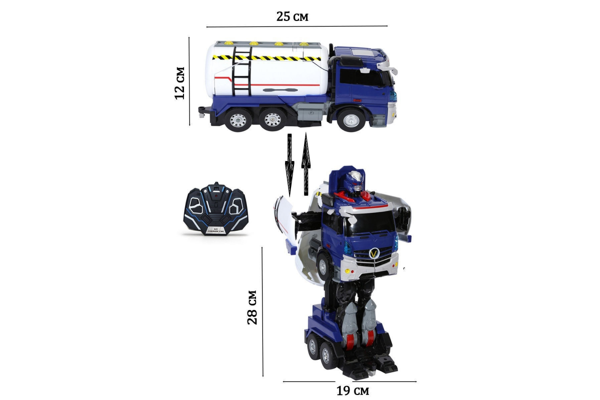 - Трансформация из машинки в робота и обратно с пульта управления