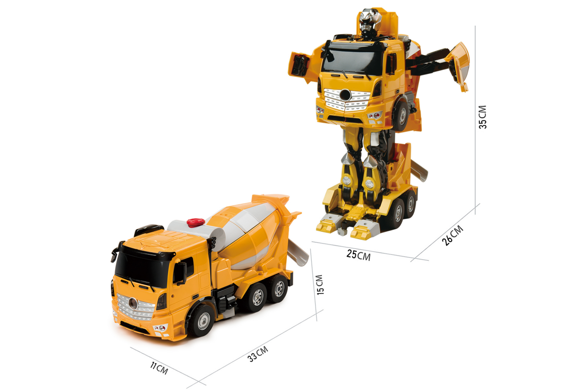 Радиоуправляемый трансформер JiaQi (бетономешалка - робот) - TT679 - это оригинальная игрушка 2-в-1: это одновременно и маневренная модель радиоуправляемой машины-бетономешалки, и грозный трансформер. Благодаря высокой проработанности и детализированному кузову машинка выглядит очень реалистично и эффектно. Нажатие всего одной кнопки на удобном пульте за считанные мгновения трансформирует ее в робота и обратно. Игры с роботом-трансформером Jia Qi Бетономешалка TT679 не только подарят детям множество часов увлекательной игры, но также поспособствуют развитию координации, пространственного воображения, позволят получить простейшие навыки управления автомобилем