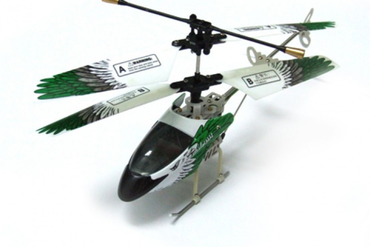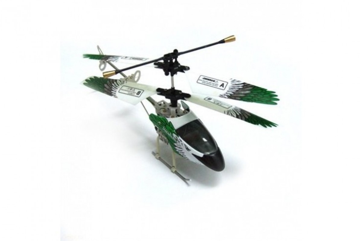 Этот вертолет обладает весьма специфической расцветкой, лопасти стилизованы под крылья птицы. Скромные размеры делают модель идеальной для домашнего использования.