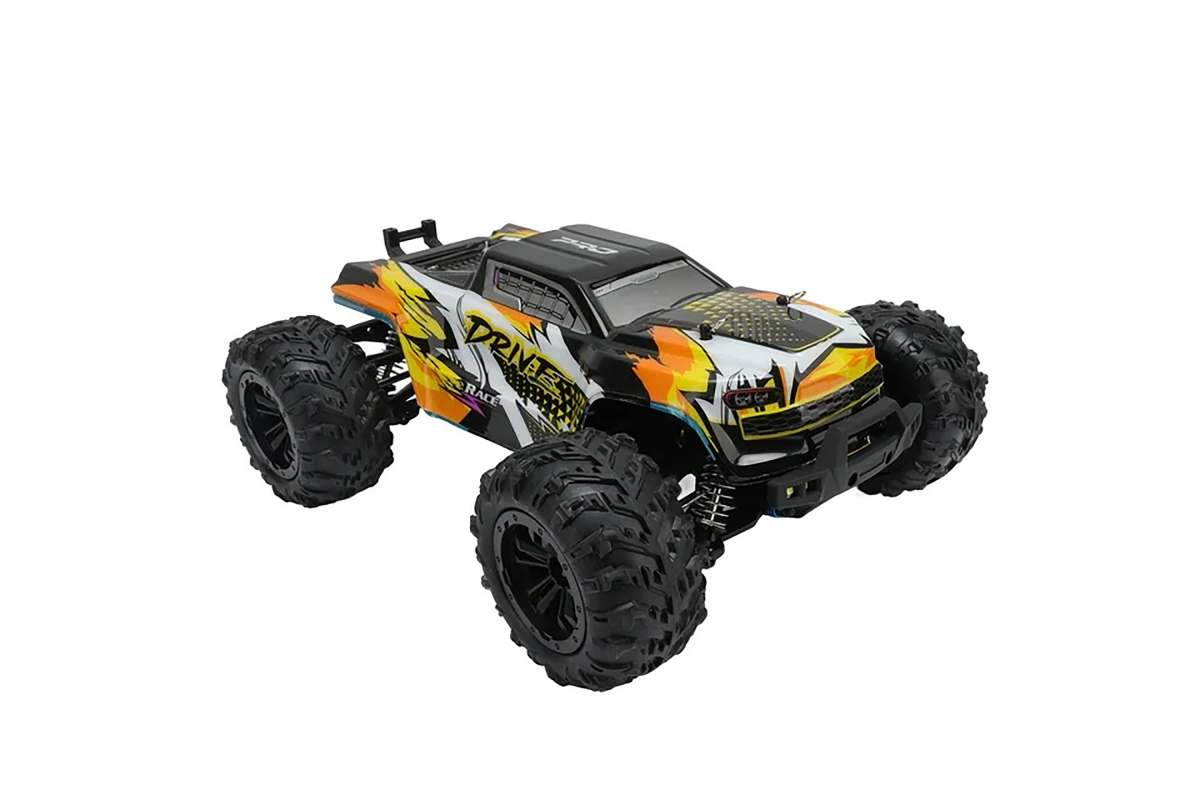 Полный привод повышает проходимость и управляемость модели. На автомодель Drive установлен бесколлекторный двигатель типа 2847 4000KV и влагозащищенный приемник с системой защиты от брызг. Мощный аккумулятор Li-Ion 7.4V 1500 mah, идущий в комплекте, позволяет непрерывно играть до 20 минут! Пульт управления на частоте 2.4Ghz позволит управлять моделью на расстоянии до 120 метров. LED подсветка переднего бампера сделаем игру в темное время суток незабываемой.