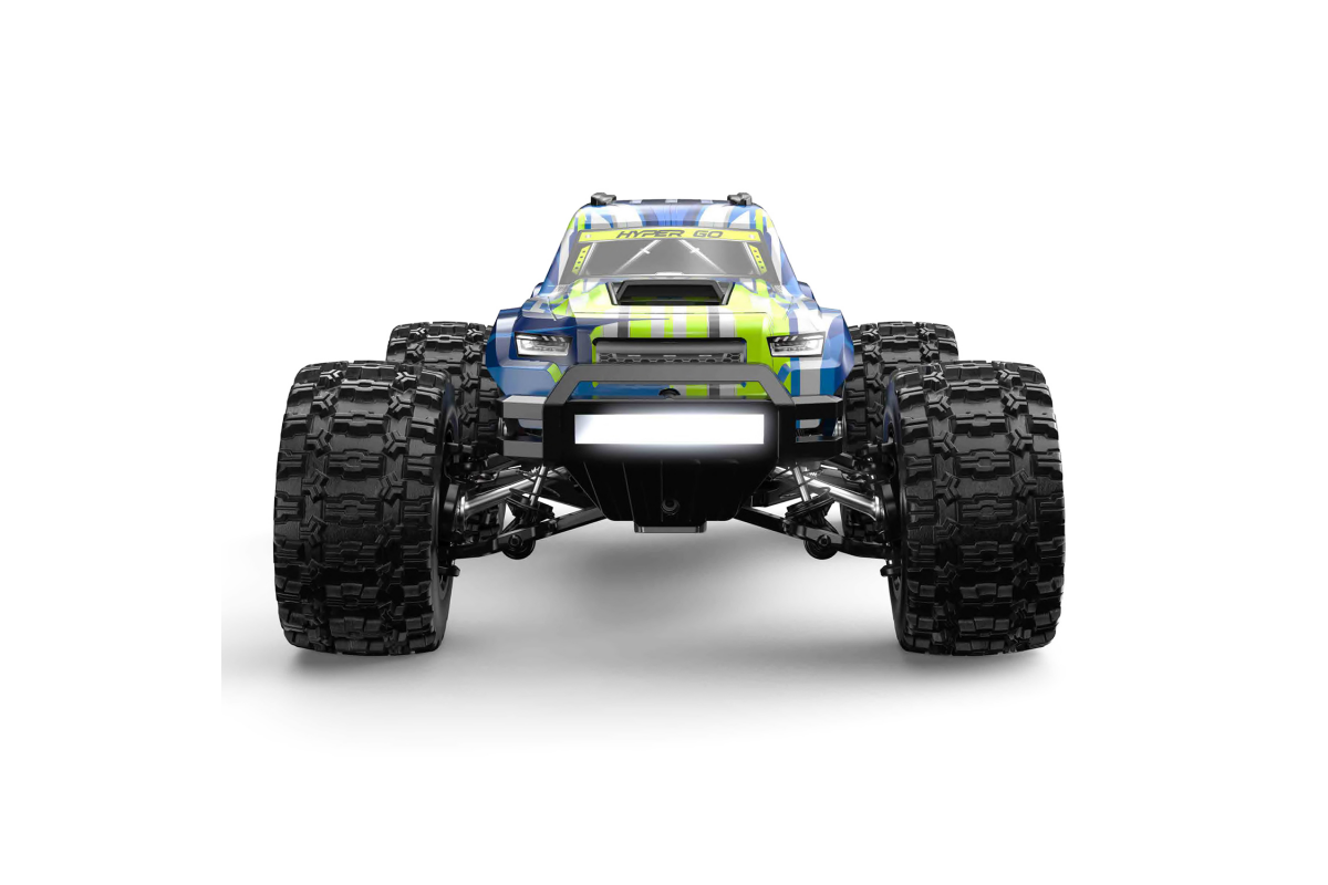 Полный привод повышает проходимость и управляемость модели. На Hyper Go установлен бесколлекторный двигатель тип 2852, а также влагозащищенный приемник и регулятор ESC 45А. Мощный аккумулятор Li-Ion 7.4V 2000 mah, идущий в комплекте, придает модели большую мощность! Пульт управления на частоте 2.4Ghz позволит управлять моделью на расстоянии до 120 метров. LED подсветка переднего бампера сделаем игру в темное время суток незабываемой. В комплекте вилли-бар для защиты машины от опрокидывания при резком старте.