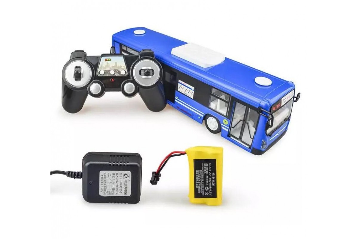 Антенна встроена в корпус. 4-х канальная радиоаппаратура работает на частоте 2,4Ггц и обеспечивает бесперебойную маневренность автомобиля влево, вправо, назад и вперед в радиусе 100 м. Звуковое сопровождение с регулируемой громкостью имитирует характерные звуки при остановке автобуса, открывании/закрывании дверей, сигнале. Так же предусмотрена подсветка фар и салона автобуса.