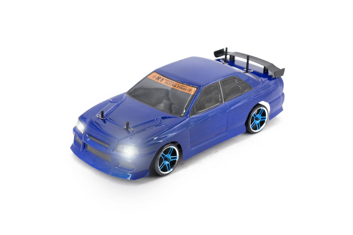 Радиоуправляемый автомобиль для дрифта HSP Flying Fish 1 LED фары 4WD 1:10 - 94123T-12330-BL - полноуправляемая радиоуправляемая автомодель с электродвигателем серии 540, на базе шасси с полным приводом, масштаб 1:10, готовая к эксплуатации. Автомобиль снабжен светодиодной подсветкой для дрифта в темное время суток.