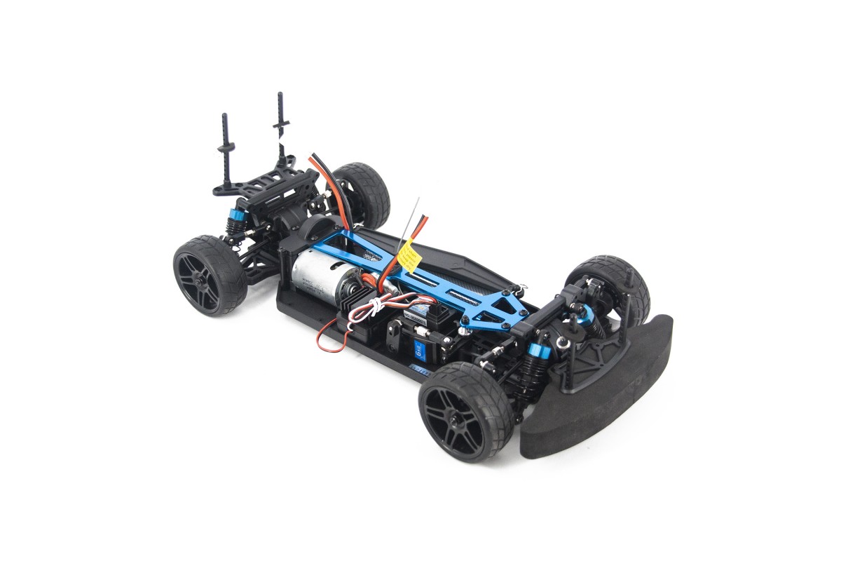 Спорткар разработан для управления в заносе: выполняйте маневры и проходите сложные повороты. Автомобиль снабжен полным приводом 4WD, шоссейными резиновыми колесами для хорошего сцепления с дорогой, а также в комплекте специальные колеса, которые обеспечивают глубокое скольжение. Разгоняется равномерно и плавно до 30 км/ч. Есть возможность модернизации: это интересно тем, кто хочет настроить машину под себя.