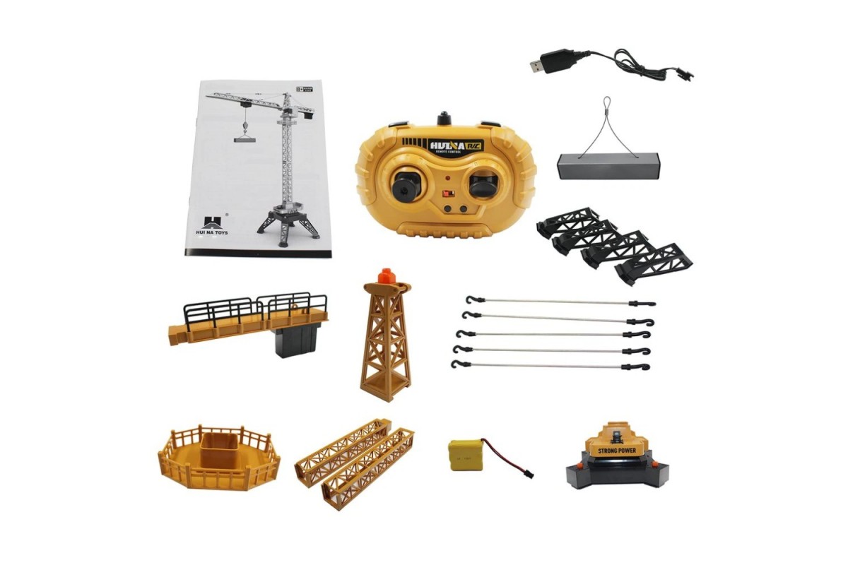 Для управления моделью в наборе предусмотрен специальный пульт, инструкция к которому поможет пользователю разобраться со всеми нюансами. Прибор работает на частоте 2.4 ГГц и позволяет полностью контролировать все режимы игрушечного башенного крана. С помощью такого пульта ребенку удастся поднимать наверх различные строительные детали и перемещать их в нужную сторону для возведения конкретного сооружения.