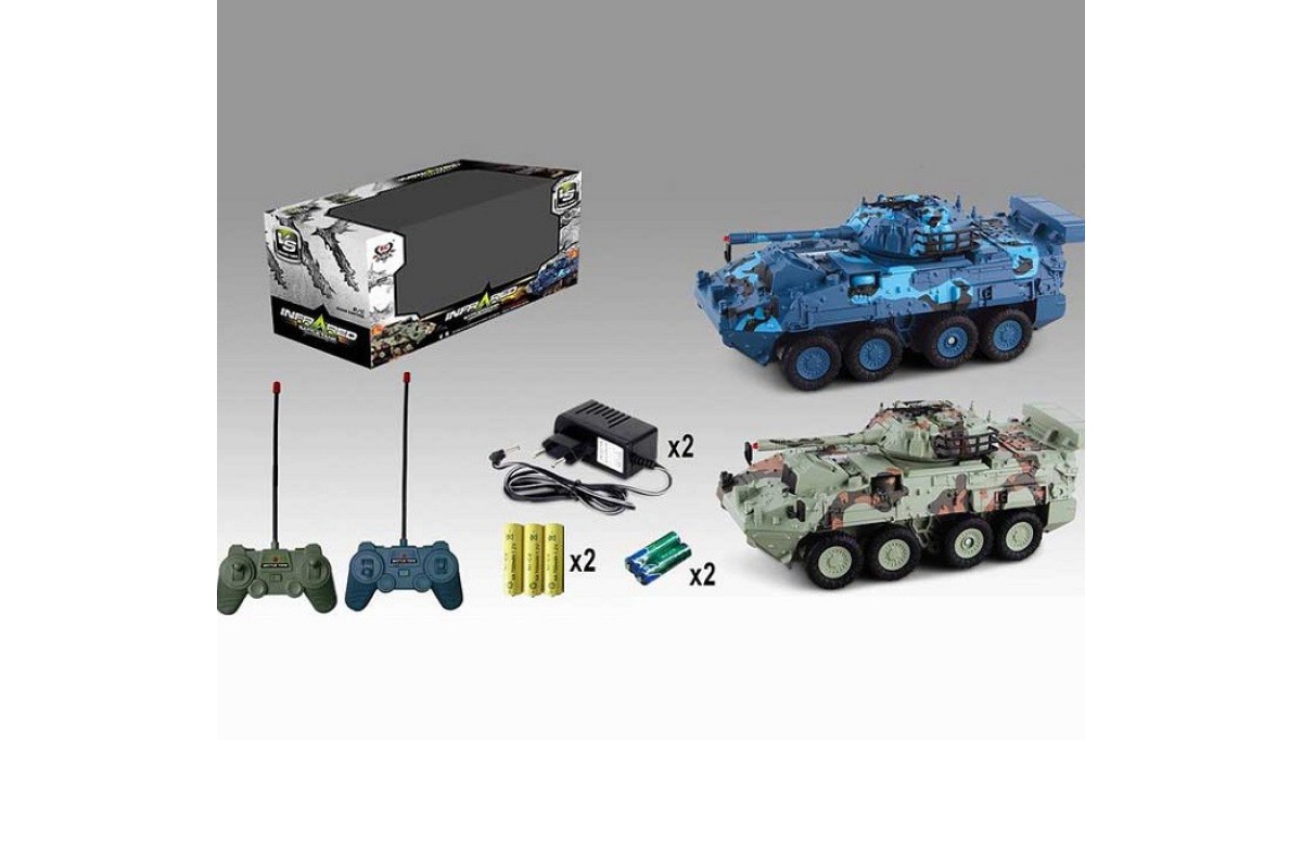 - Комплектация:RTR - (Ready To Run), 2 х БТР. 2 х пульта управления. 2 х аккумулятора. 2 х зарядных устройства. 2 х батарейки для пульта управления.