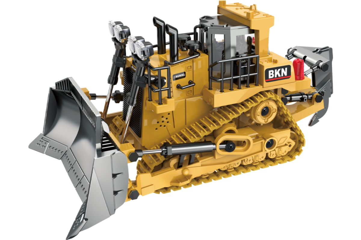 Игрушка полностью функциональная. Бульдозер может двигаться в разных направлениях, поворачивать в разные стороны, вращаться на 360 на месте. С помощью двигающегося ковша можно загребать и выгружать даже мелкие камни. Ему вполне по силам разгрести различные виды грунта, а там где не поднять грунт на помощь приходит рыхлитель, с помощью которого бульдозер рыхлит грунт.