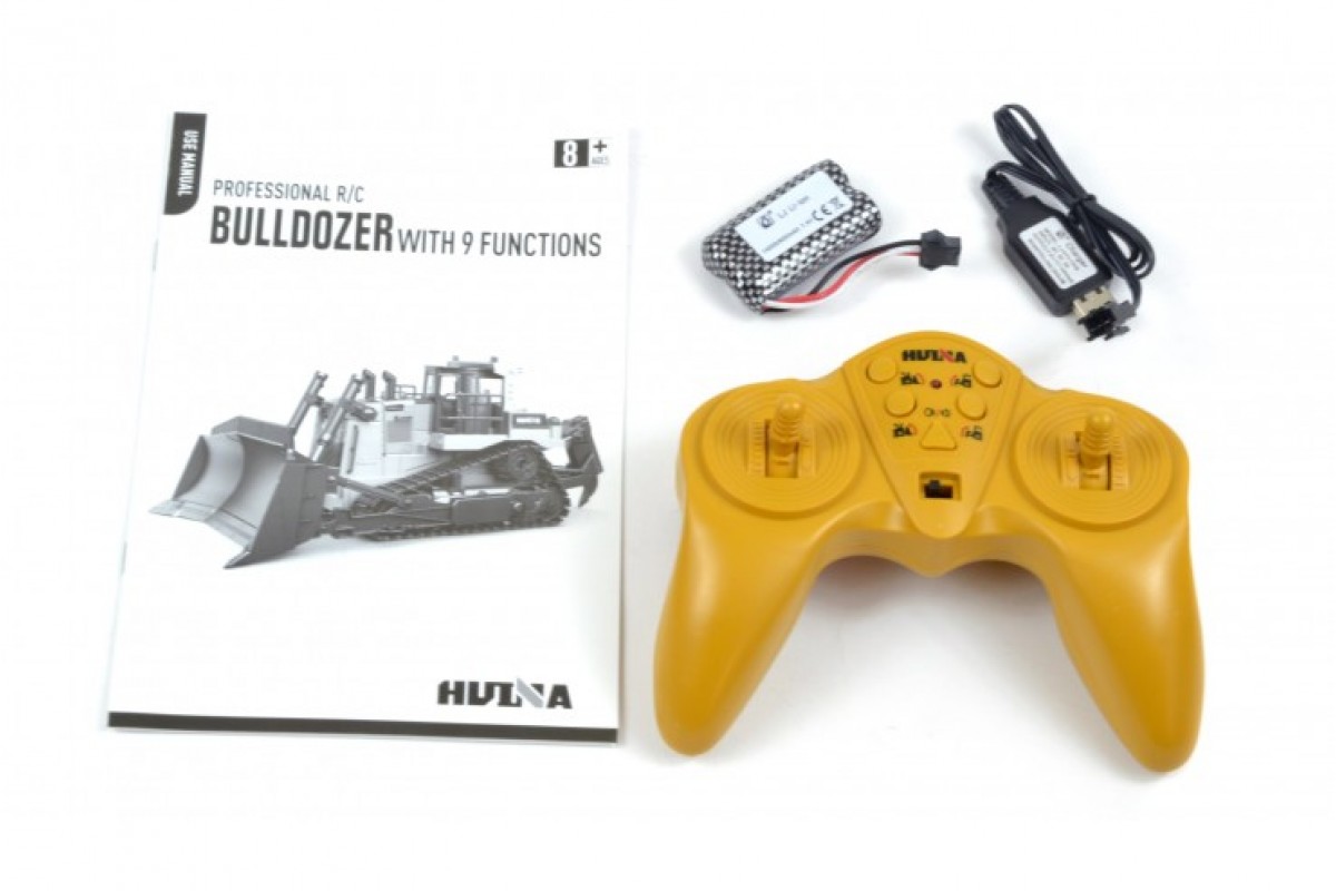 Комплектация: радиоуправляемый бульдозер, пульт управления 2.4G, аккумулятор 7.4V 600mAh, USB зарядное устройство