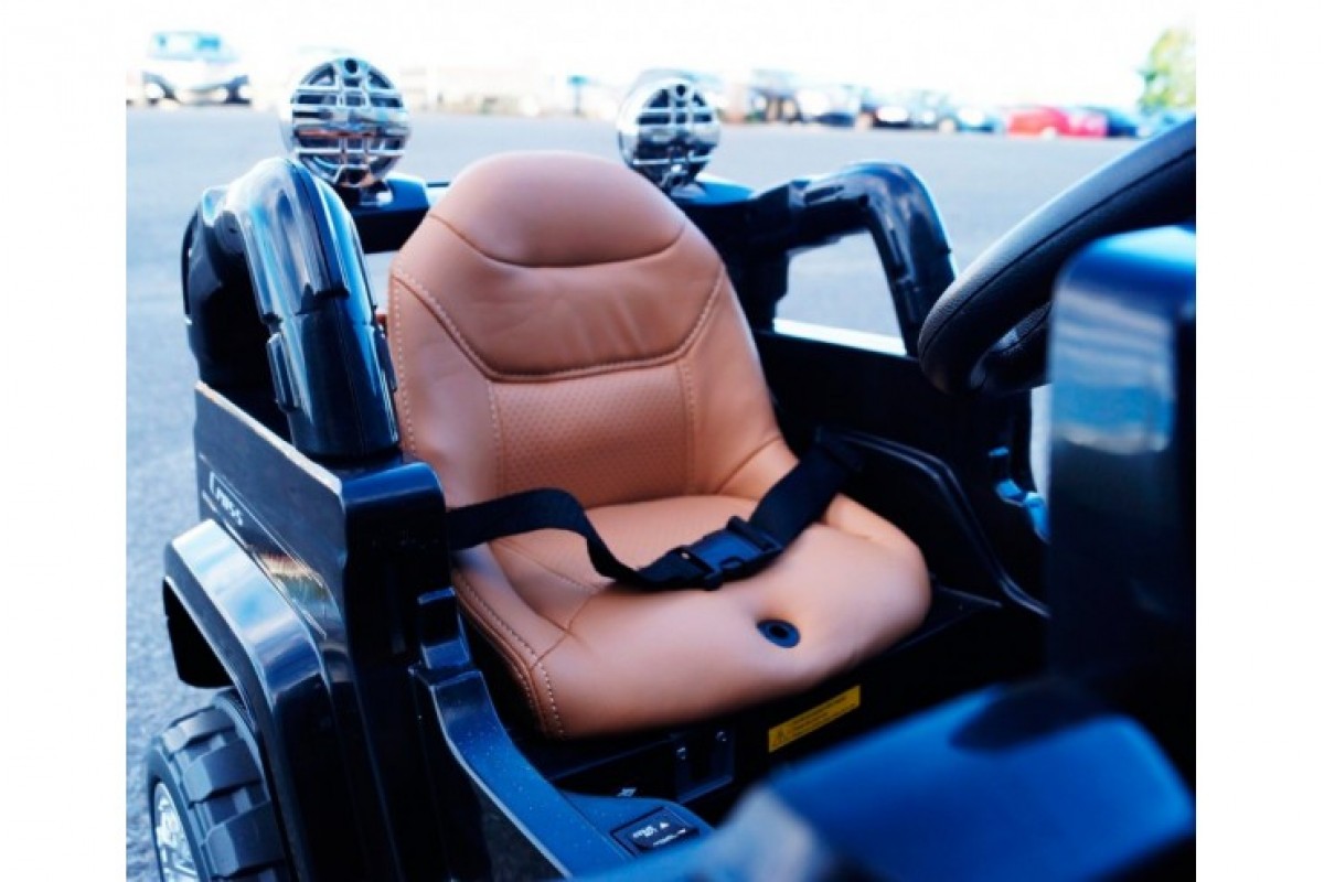 Мягкое кожаное сидение, крепкий ремень безопасности, удобная основная конструкция - одну ребенку в этой машинке будет комфортно и просторно! Он сможет насладиться всеми преимуществами катания на джипе!