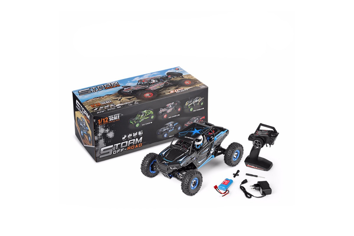 Радиоуправляемый Дезерт-багги WLToys 4WD RTR масштаб 1:12 2.4G - WLT-12427-B - это полноприводная багги WLT-12427-B Polestar в масштабе 1/12 с надежным коллекторным двигателем имеет привод на все 4 колеса и длинноходную подвеску. Это настоящий покоритель внедорожных трасс. Эффектный дизайн и продуманная конструкция шасси позволяют модели разгоняться до скорости 50км/час!