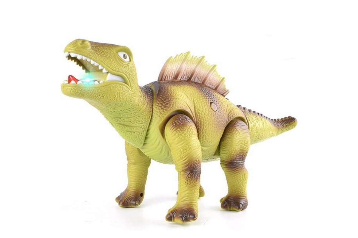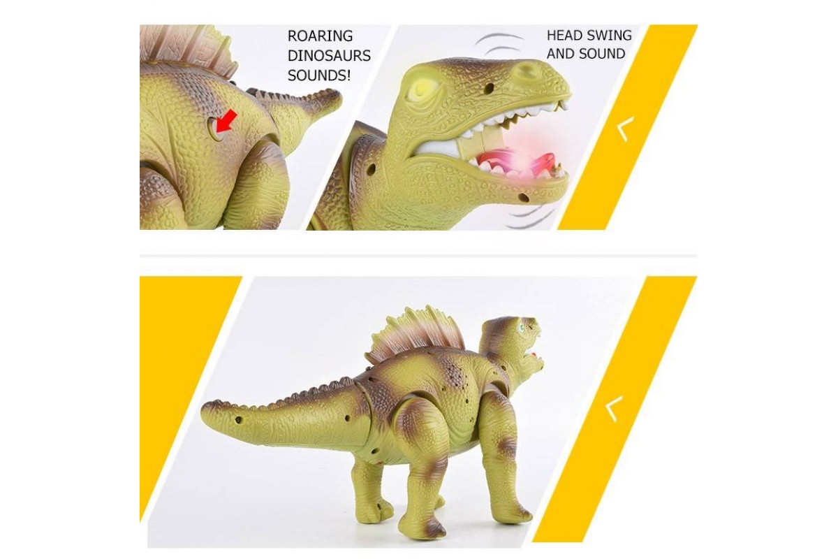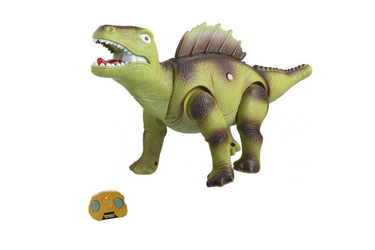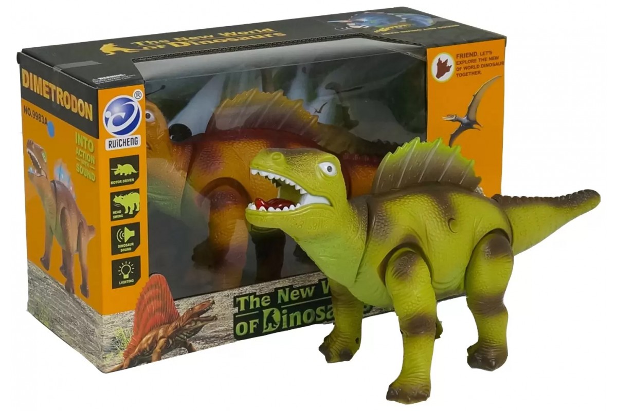 Игрушка "Динозавр-Диметродон" на радиоуправлении представляет собой фигурку, которой можно управлять при помощи стильного пульта, напоминающим окаменелость со следом. Ребенок сможет заставить игрушечного динозавра ходить, опуская голову, махать хвостом и рычать. При этом глаза динозавра светятся. Перед автоматическим отключением, которое происходит через 60 секунд по завершении игры, динозавр издает крик.