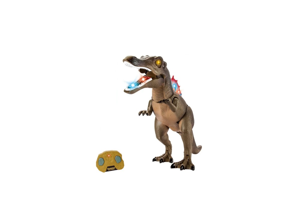 Управление динозавром осуществляется при помощи специального пульта ДУ, который выполнен в виде большой окаменелости. Главным достоинством этой игрушки является ее удивительная реалистичность. Даже самые мелкие детали качественно прорисованы. Игрушка также оснащена световыми эффектами.