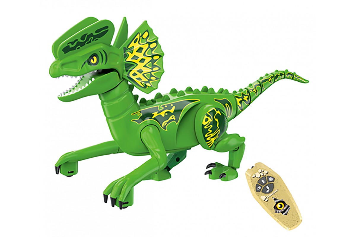 Такого питомца на радиоуправлении можно приютить у себя. Он может двигаться вперед и назад, поворачивать вправо, влево и при движении реалистично изгибается тело и шевелится хвост. Благодаря колесикам, установленным на передних конечностях, динозавр имеет дополнительные точки опоры и поэтому очень устойчив. Подсветка пасти в темноте выглядит зловеще и придает динозавру реалистичности. Кроме того, динозавр издает реалистичные звуки.