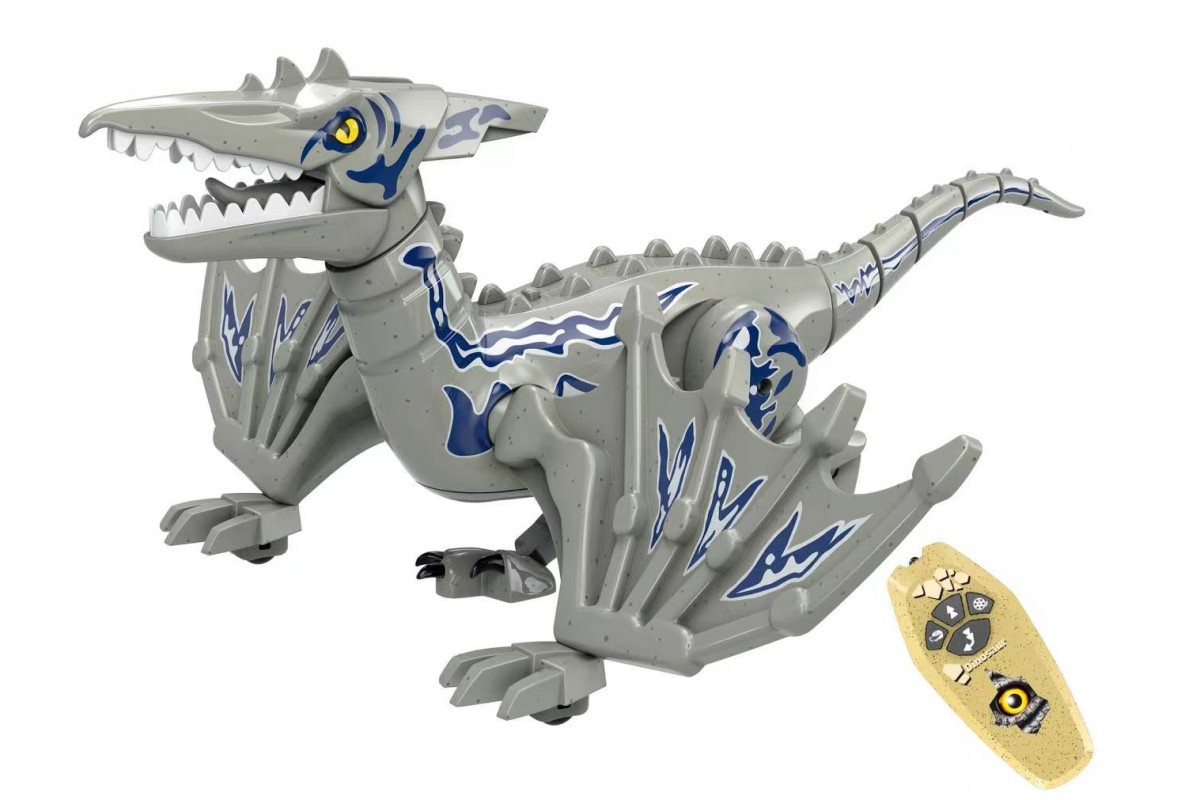 Такого питомца на радиоуправлении можно приютить у себя. Он может двигаться вперед и назад, поворачивать вправо, влево и при движении реалистично изгибается тело и шевелится хвост. Благодаря колесикам, установленным на передних конечностях, динозавр имеет дополнительные точки опоры и поэтому очень устойчив. Подсветка пасти в темноте выглядит зловеще и придает динозавру реалистичности. Кроме того, динозавр издает реалистичные звуки.