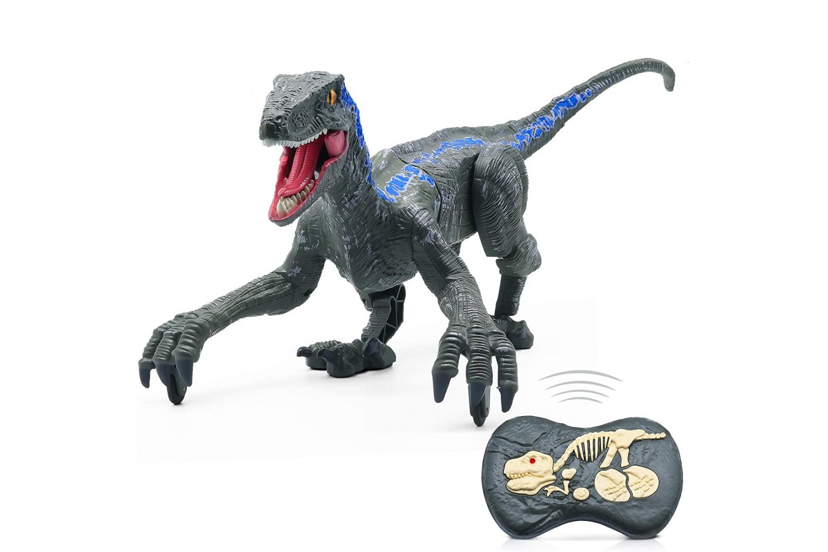 Такого питомца на радиоуправлении можно приютить у себя. Он может двигаться вперед и назад, поворачивать вправо, влево и при движении реалистично изгибается тело и шевелится хвост. Благодаря колесикам, установленным на передних конечностях, велоцирапотор имеет дополнительные точки опоры и поэтому очень устойчив. Подсветка пасти в темноте выглядит зловеще и придает динозавру реалистичности. Кроме того, динозавр издает реалистичные звуки.