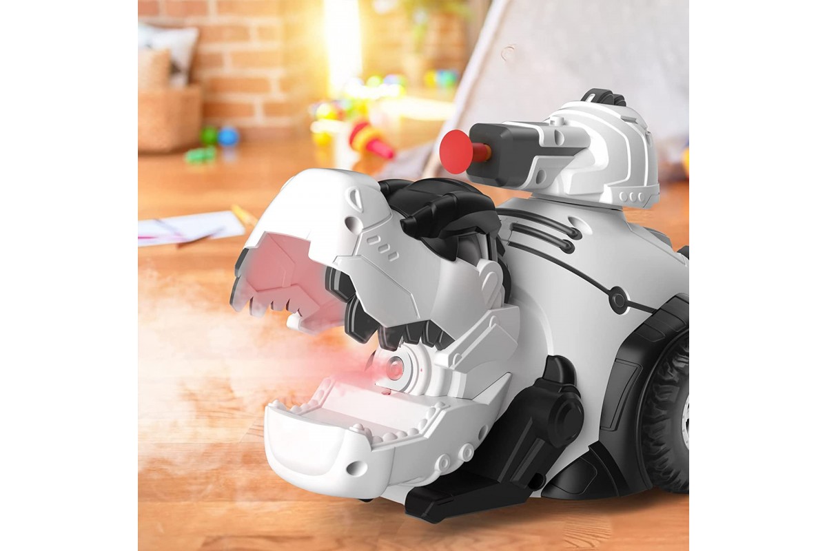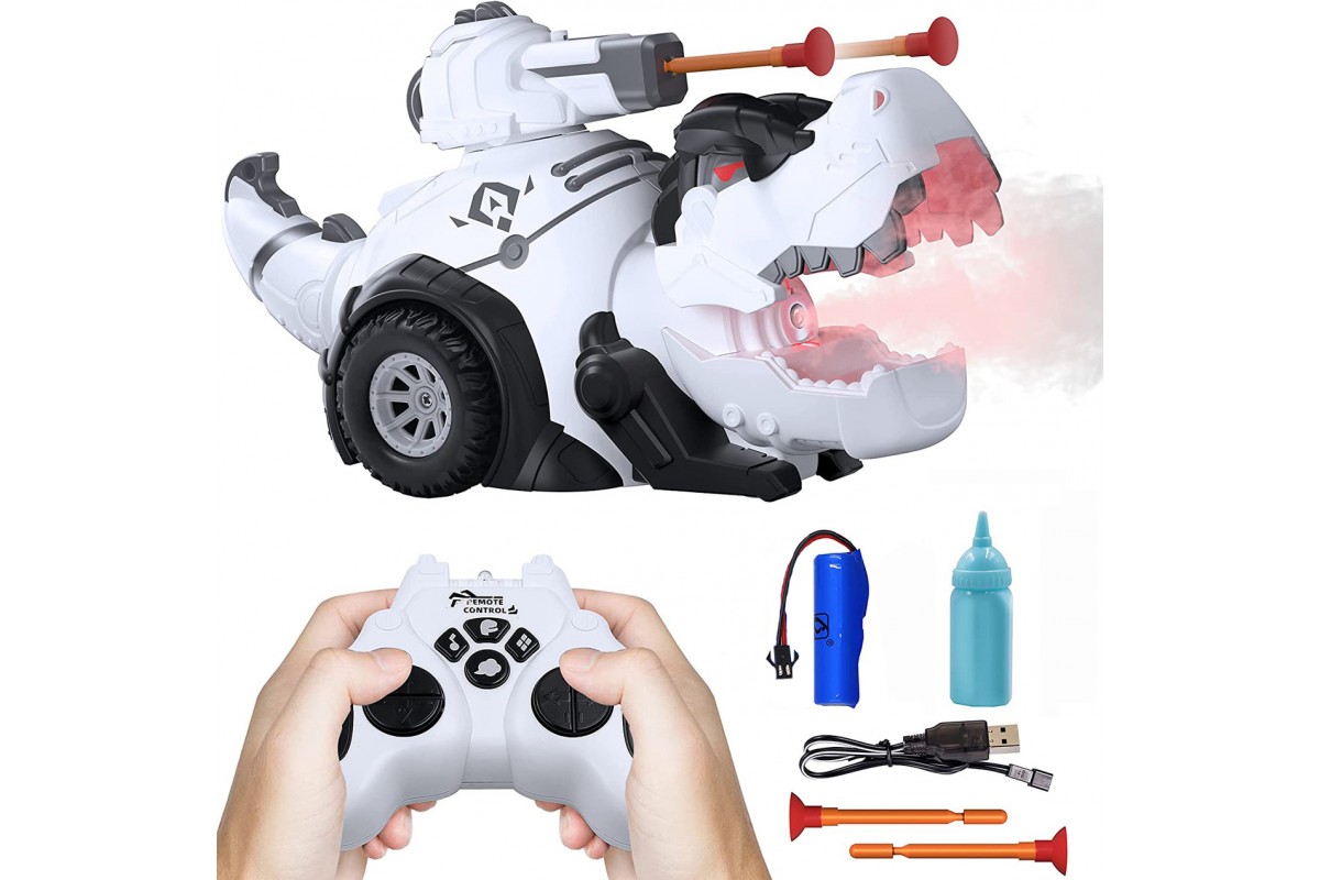 Радиоуправляемый динозавр T-Rex (пар, стреляет пулями, звук, акб) - CS-YS01 - это интерактивный динозавр может ходить в нескольких режимах, разворачиваться в обе стороны, стрелять присосками, выполнять команды. А также робот выпускает пар изо рта. Пар в свою очередь подсвечивается лампочками, что создаёт эффект огня. Робот динозавр на радиоуправлении понравится каждому ребенку!