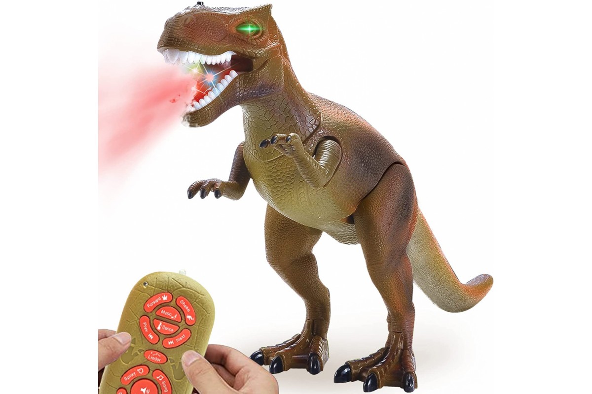 Управление тиранозавром осуществляется при помощи специального пульта ДУ, который выполнен в виде большой окаменелости. Главным достоинством этой игрушки является ее удивительная реалистичность. Даже самые мелкие детали качественно прорисованы. Игрушка также оснащена световыми эффектами.