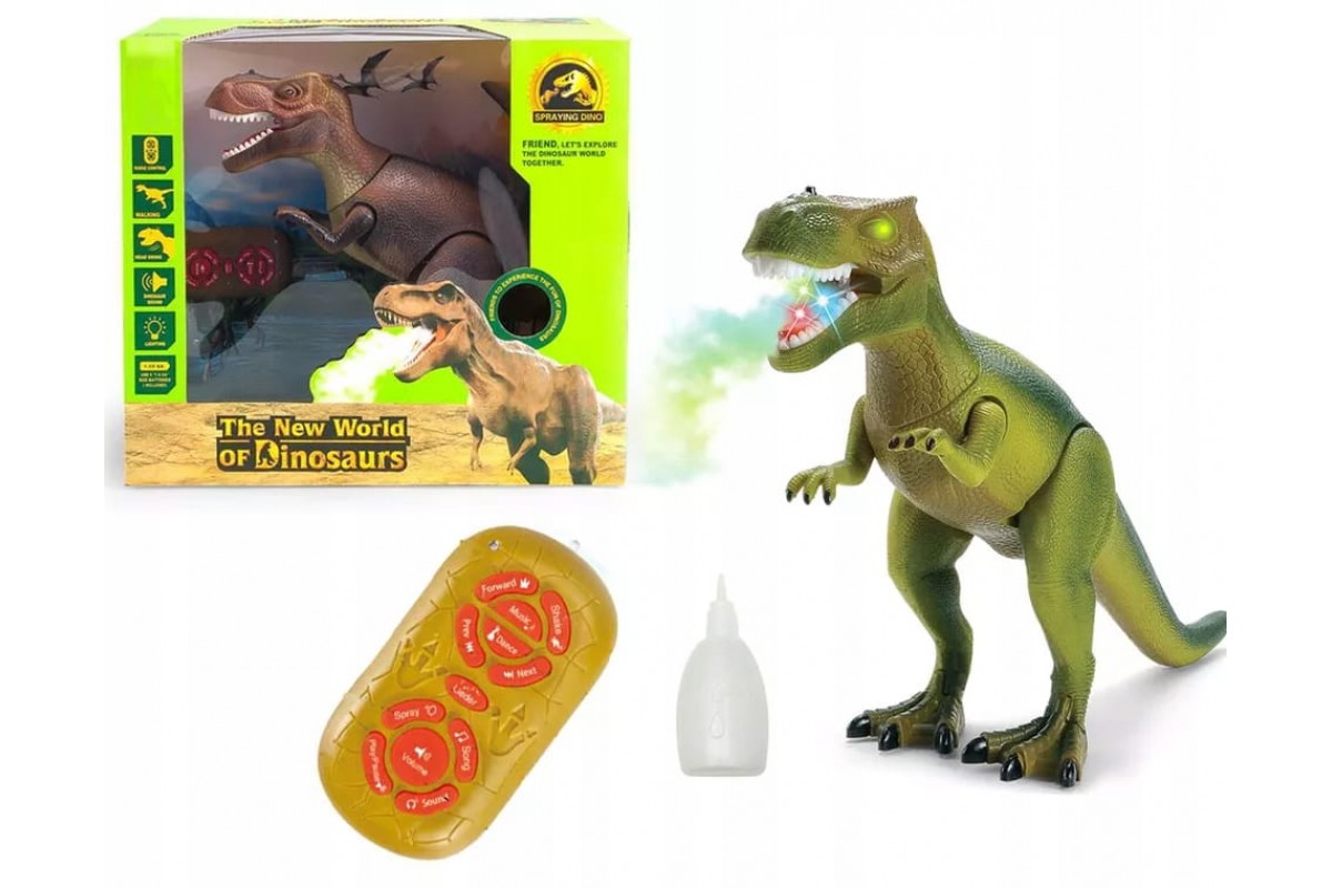 Управление тиранозавром осуществляется при помощи специального пульта ДУ, который выполнен в виде большой окаменелости. Главным достоинством этой игрушки является ее удивительная реалистичность. Даже самые мелкие детали качественно прорисованы. Игрушка также оснащена световыми эффектами.