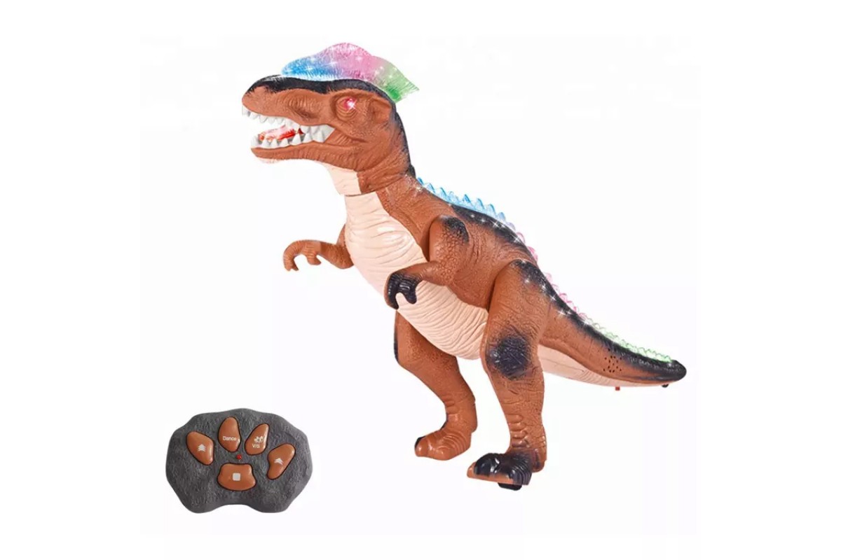 - Игрушка предлагает детям приручить реалистичного динозавра, который управляется с помощью пульта с кнопочками.
