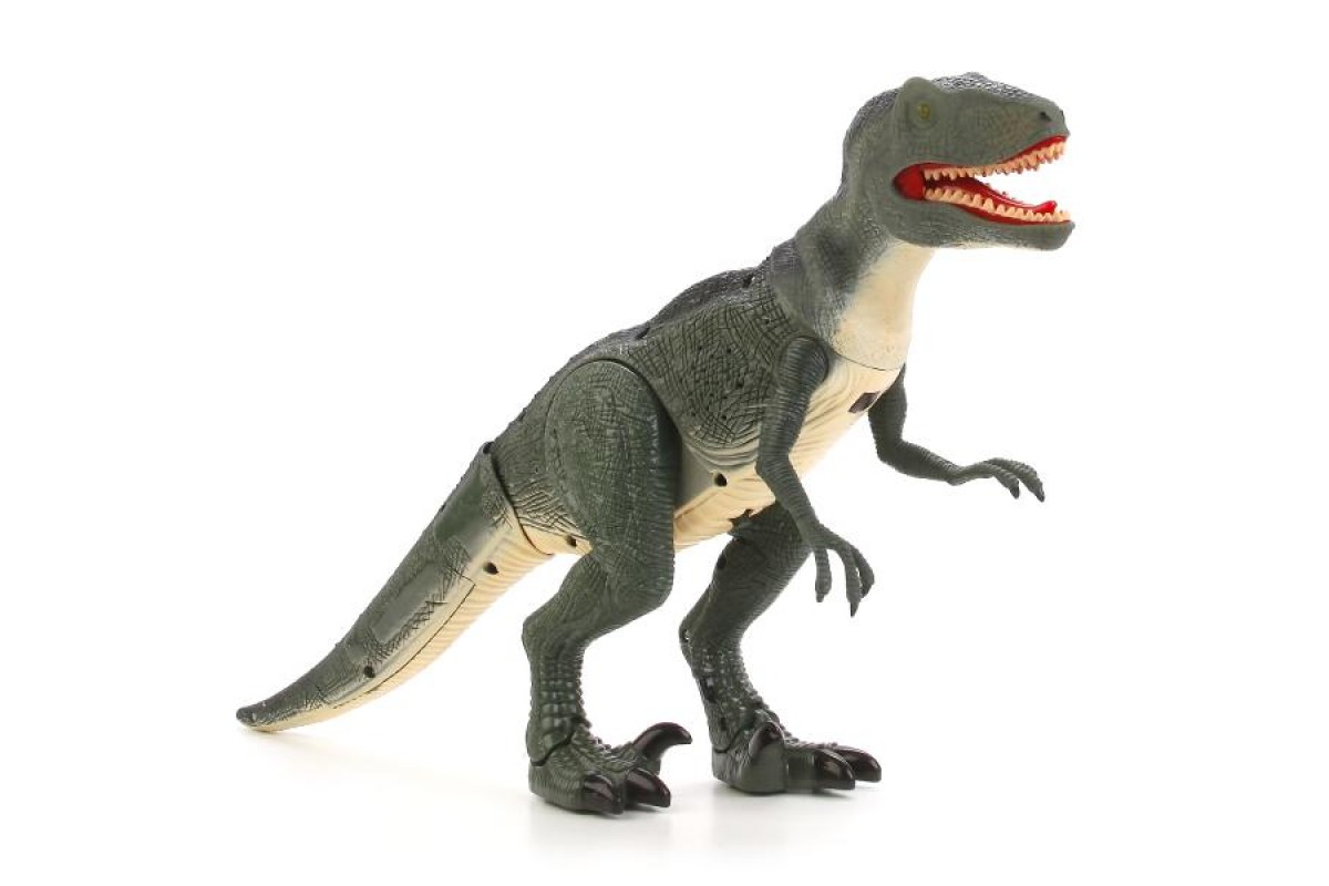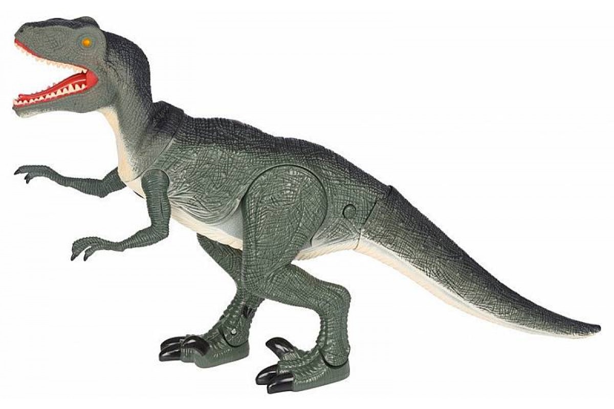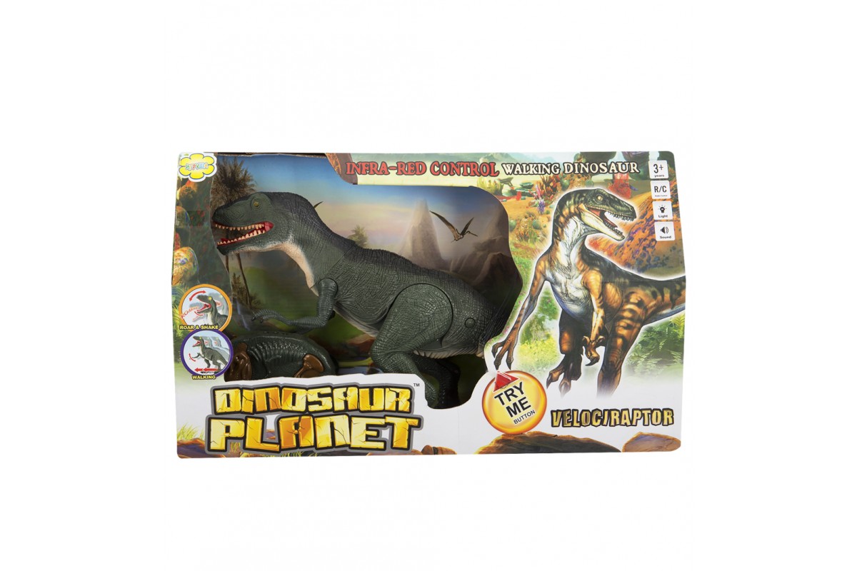 Игрушка представляет собой род хищных двуногих динозавров из семейства дромеозаврид - Велоцираптор. Изделие отличается реалистичным внешним видом и оригинальным исполнением. Данный интерактивный доисторический ящер управляется с помощью пульта, выполненного в виде древнего камня. Нажимая на кнопки, ребенок увидит, что тираннозавр может ходить, двигать пастью и лапами, вращать головой, издавать звуки, похожие на крики настоящего динозавра, а также у него светятся глаза и разборный хвост.