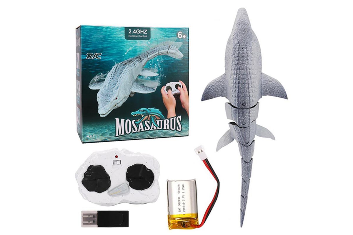 Радиоуправляемый динозавр ZF Мозазавр (плавает в воде, акб) - 6667 - это реалистичная игрушка, которая действительно умеет плавать: делает развороты влево и вправо, движения вперед и назад, а также двигает туловищем и хвостовым плавником.