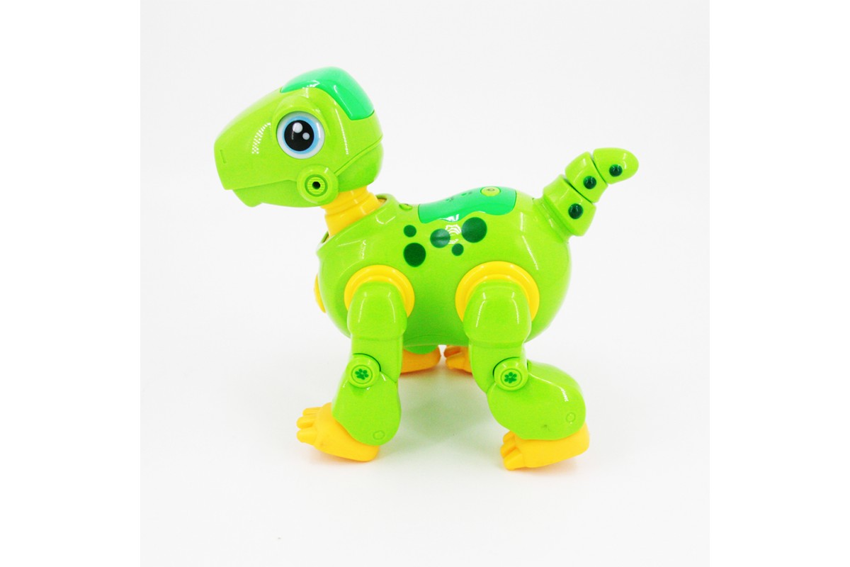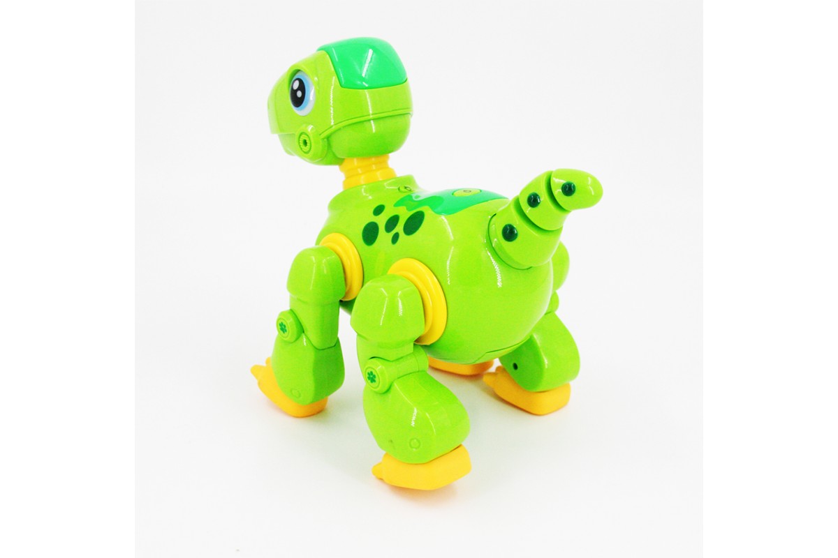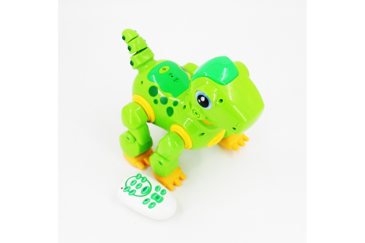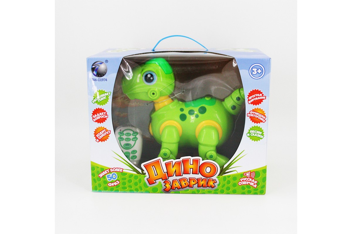 Радиоуправляемый динозаврик - 2055A - это интерактивный динозаврик на дистанционном управлении - оригинальный подарок с разнообразными функциями для развлечения вашего ребенка. Необычный, но очень милый, питомец умеет двигать головой и вилять хвостиком, ходить вперед и назад, бегать и танцевать. Кроме того, он с удовольствием общается и выполняет голосовые команды, поет, читает сказки и любит задавать интересные несложные вопросы, способствующие расширению кругозора ребенка. Пульт ДУ имеет простой и понятный для ребенка интерфейс: кнопки выполнены в удобной для детских пальчиков форме, маркированы командами на русском языке. Комплект функционирует от обычных пальчиковых батареек и готов к эксплуатации в любой момент.