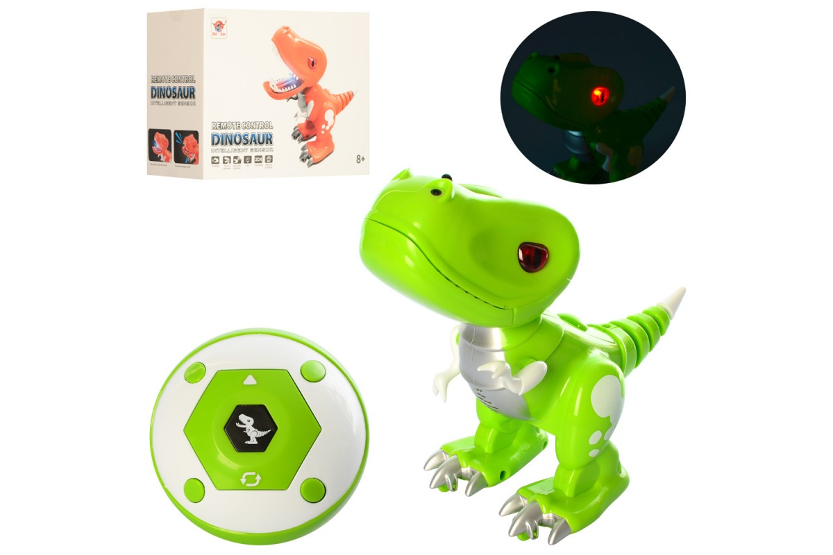 Следуя командам с пульта малыш динозавр двигается вперед, назад, влево, вправо. Не даже используя пульт дистанционного управления, можно заставить динозавра двигаться! Коснитесь сенсора на затылочной части головы динозавра, и динозавр повернется против часовой стрелки. Положите руку на голову динозавра, и динозавр автоматически продвинется вперед.