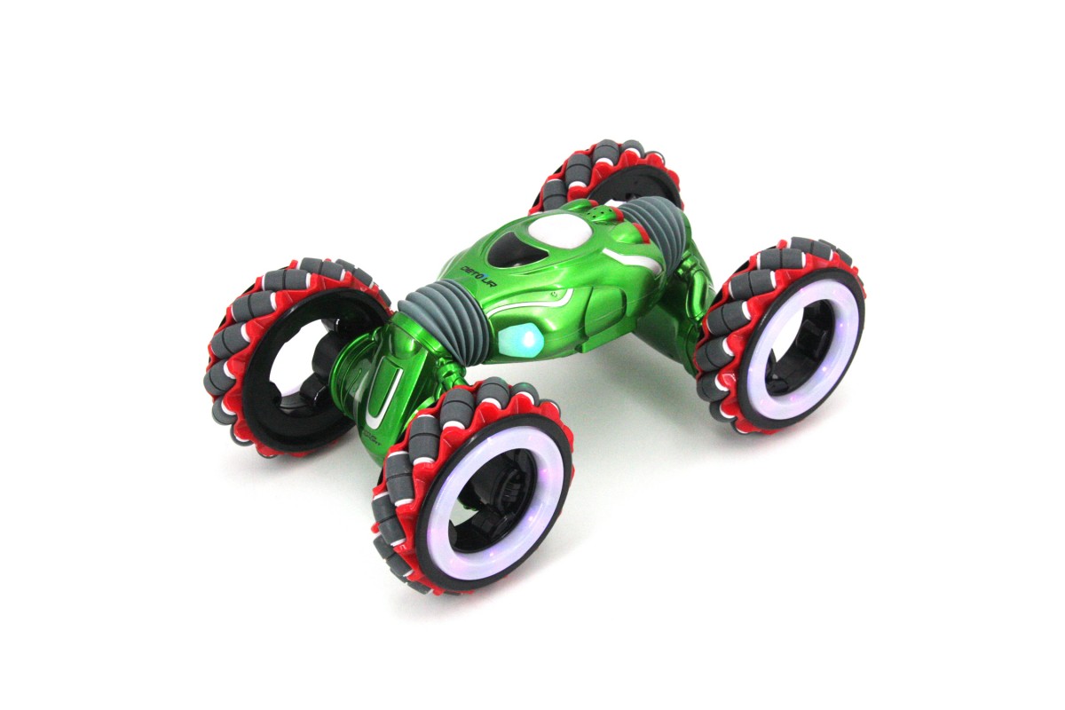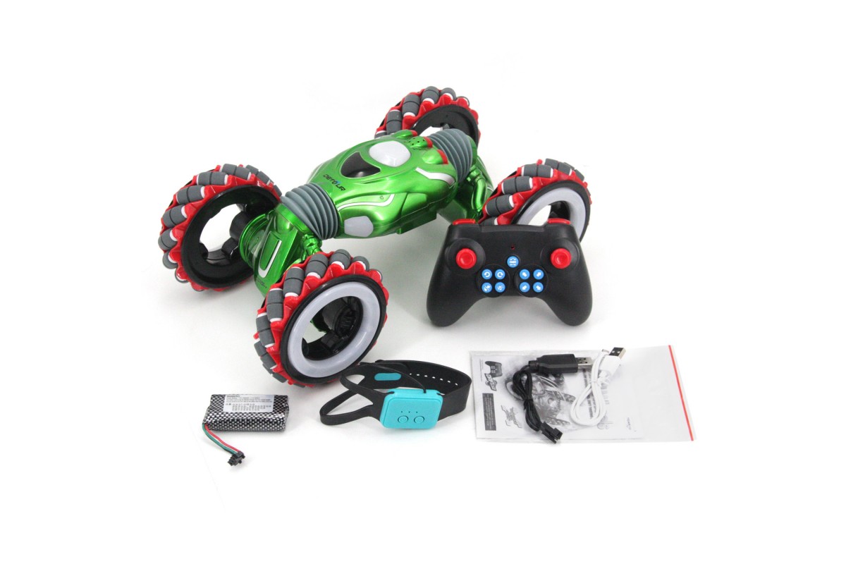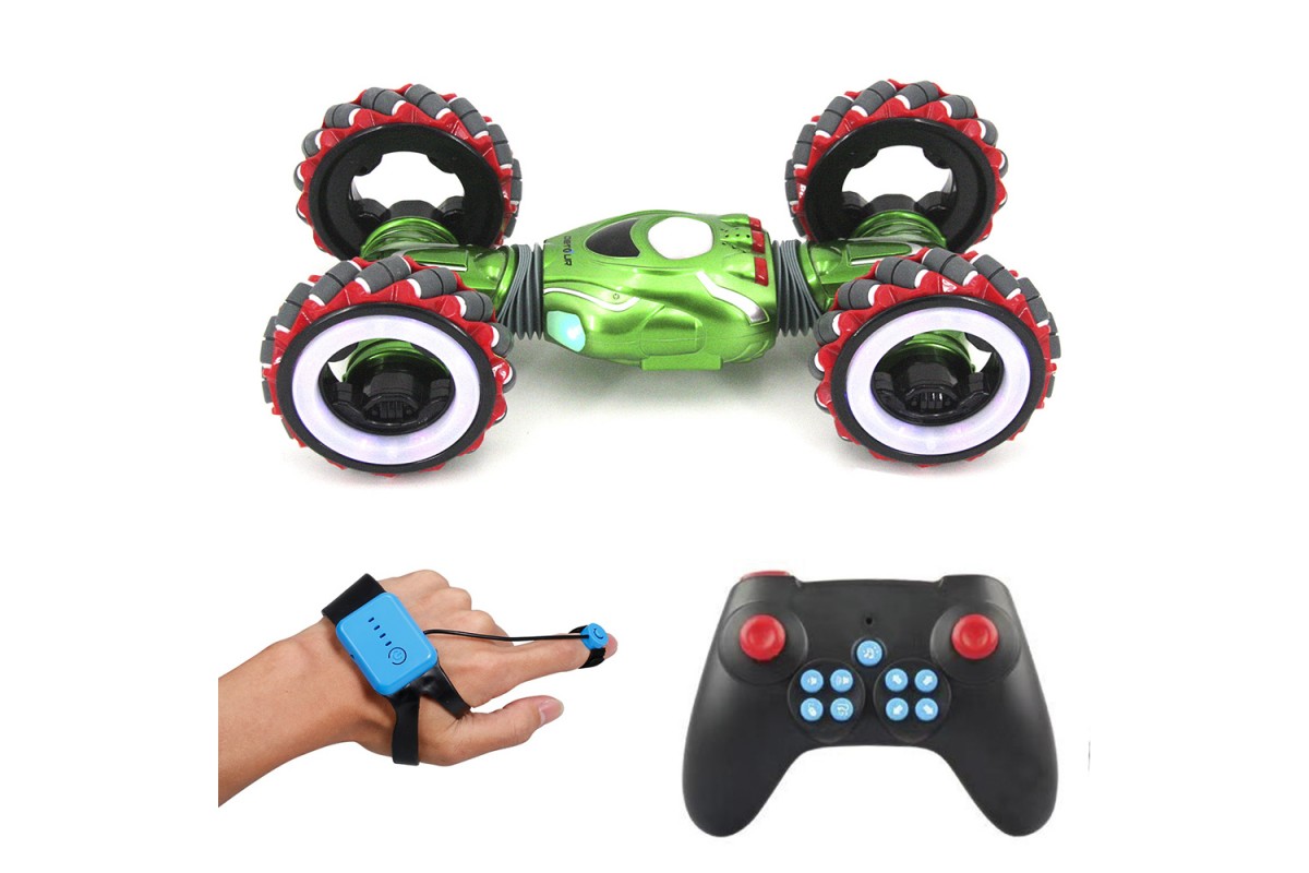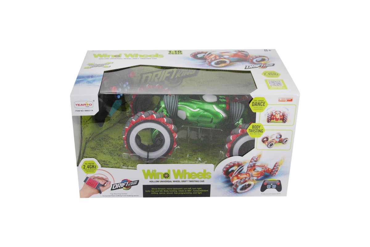 Радиоуправляемый дрифт Твистер Yearoo (часы + пульт) 1:10 - 99003-1A-GREEN - это машинка перевертыш Wind Wheels, которая является несомненным хитом продаж среди радиоуправляемых моделей. Обновленная версия стала еще лучше. О такой машинке мечтает каждый мальчик. Возможности машинки Wind Wheels просто невероятны. Она может ездить, крутиться на месте, переворачиваться и ехать дальше, приподниматься и даже танцевать. Но главная особенность заключается в управлении и уникальных колесах с яркой светодиодной подсветкой. Данной машинкой можно управлять жестами при помощи специального браслета, который входит в комплект с машинкой Wind Wheels. Увлекательный процесс управления понравится не только детям, но и взрослым. И все это будет сопровождаться звуками работающего мотора, яркой подсветкой колес и песнями. Особенно эффектно машинка смотрится в темноте.