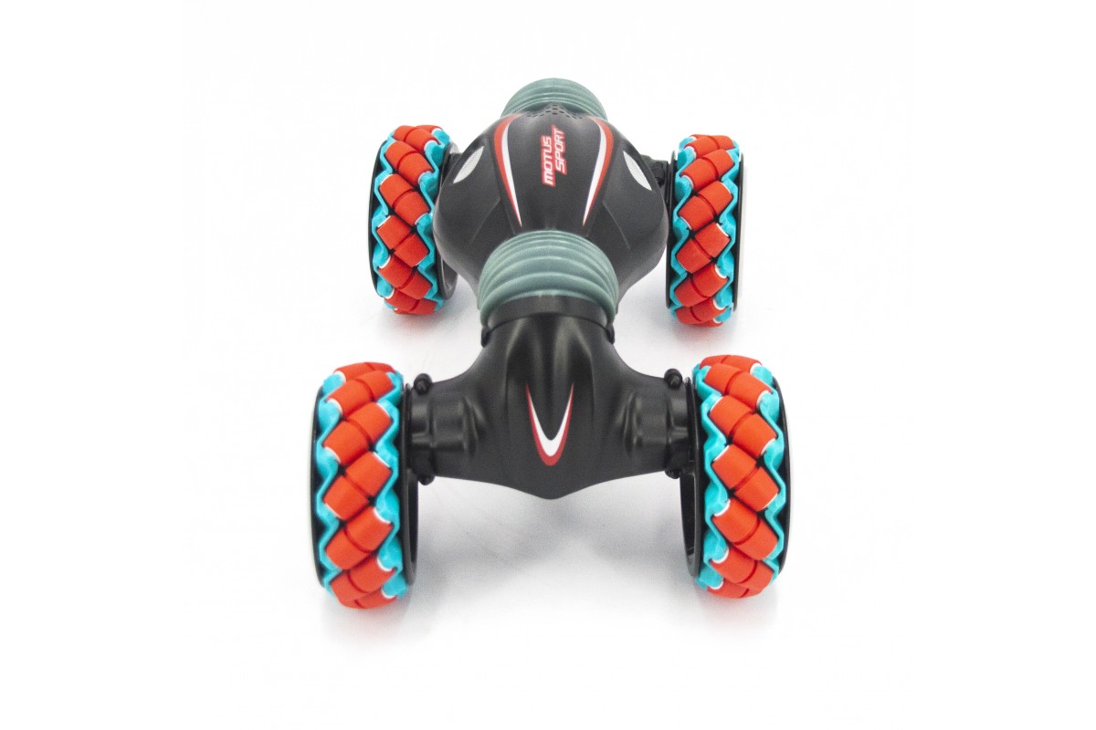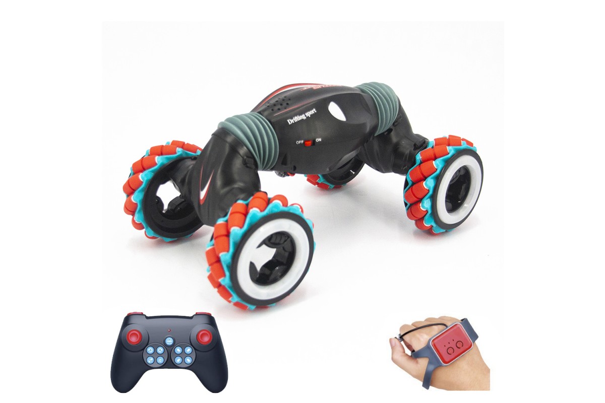- Контроль жестами: в комплект входит дополнительный пульт, который фиксируются на ладони. Благодаря ему вы сможете управлять вездеходом лёгкими жестами одной руки. При этом вы сможете управлять не только направлением движения, но и изменять высоту подвески машины и делать трюки.