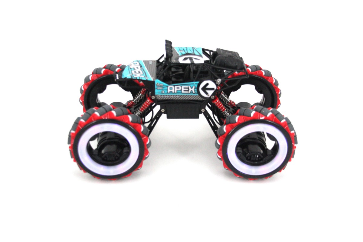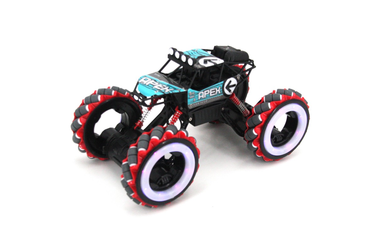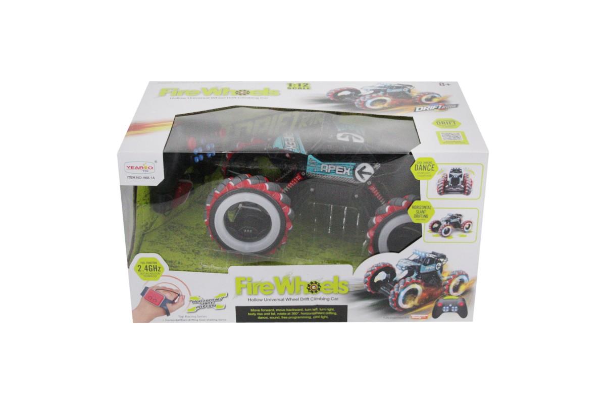 Радиоуправляемый джип для дрифта Yearoo (часы + пульт) 1:12 - 668-1A-BLUE - это машинка краулер Apex Fire Wheels, которая является несомненным хитом продаж среди радиоуправляемых моделей. О такой машинке мечтает каждый мальчик. Возможности машинки Apex Fire Wheels просто невероятны. Она может ездить, крутиться на месте и ехать дальше, приподниматься и даже танцевать. Но главная особенность заключается в управлении и уникальных колесах с яркой светодиодной подсветкой. Данной машинкой можно управлять жестами при помощи специального браслета, который входит в комплект с машинкой Apex Fire Wheels. Увлекательный процесс управления понравится не только детям, но и взрослым. И все это будет сопровождаться звуками работающего мотора, яркой подсветкой колес и песнями. Особенно эффектно машинка смотрится в темноте.