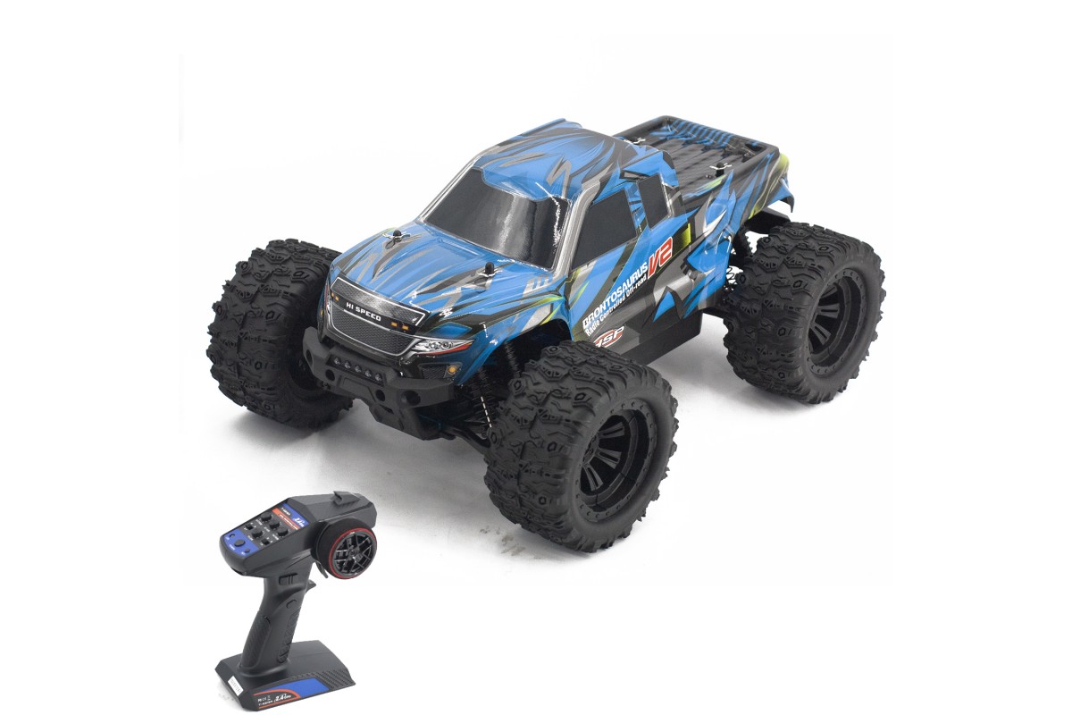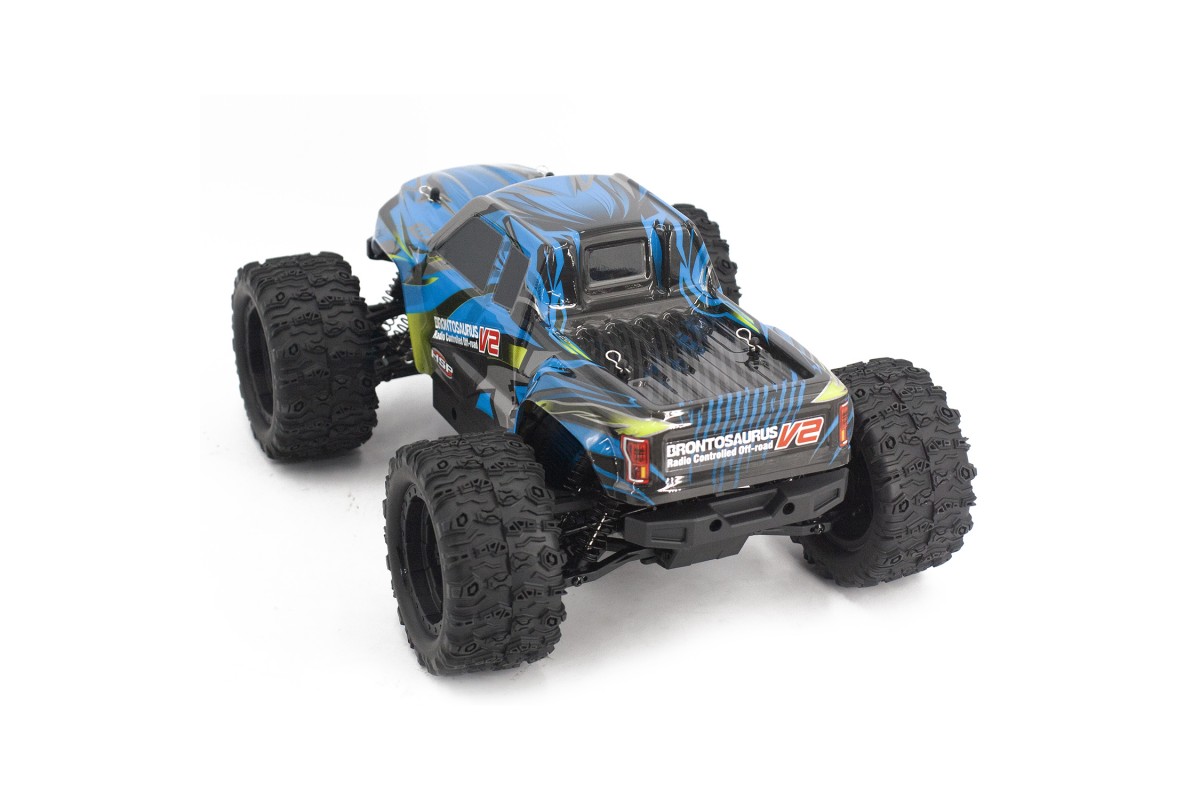 Устройство оснащено мощным электрическим мотором RC 550. Модель полноприводная, поэтому демонстрирует отличные показатели динамики. В комплектации машины — маслонаполненные амортизаторы, а также эффективная система управления. Модель HSP Brontosaurus 4WD поставляется вместе с пультом. Корпус этого монстра изготавливается из легкого пластика повышенной прочности, за счет чего конструкторам удается минимизировать вес без ущерба для надежности решения.