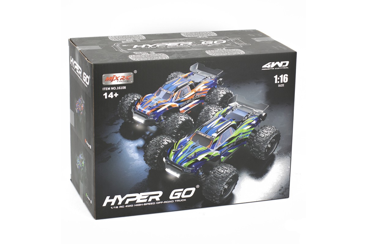 Радиоуправляемый джип MJX Hyper Go 4WD LED 1:16 2.4G - MJX-16108-ORANGE - это новая модель от популярного производителя MJX R/C. Автомобиль выполнен в масштабе 1/16 и отличается от конкурентов наличием интеллектуальной аккумуляторной батареи, системой охлаждения двигателя, а также оптимальным соотношением цены и качества деталей. На данную модель возможно установить GPS датчик с передачей данных через Bluetooth.