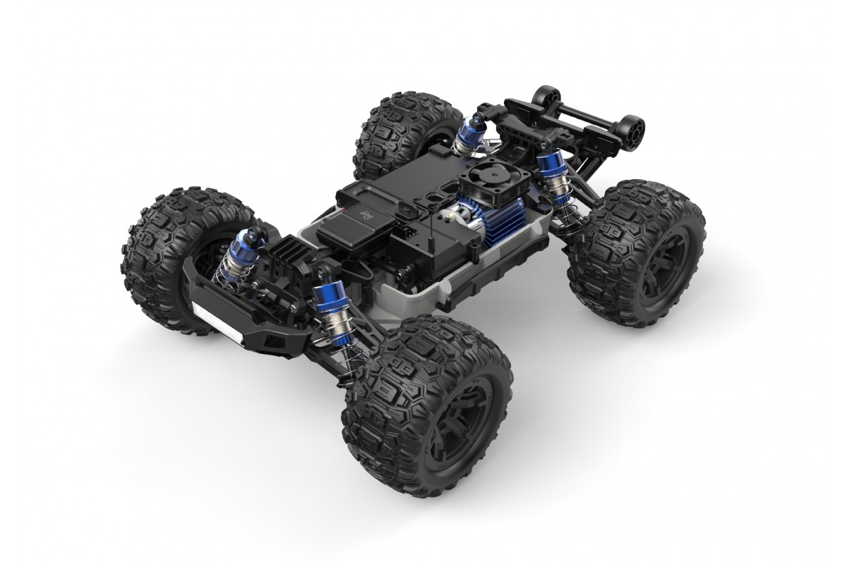 Полный привод повышает проходимость и управляемость модели. На Hyper Go установлен коллекторный двигатель 390 класса и влагозащищенный приемник 2 в 1. Мощный аккумулятор Li-Ion 7.4V 1000 mah, идущий в комплекте, придает модели большую мощность! Пульт управления на частоте 2.4Ghz позволит управлять моделью на расстоянии до 120 метров. LED подсветка переднего бампера сделаем игру в темное время суток незабываемой.