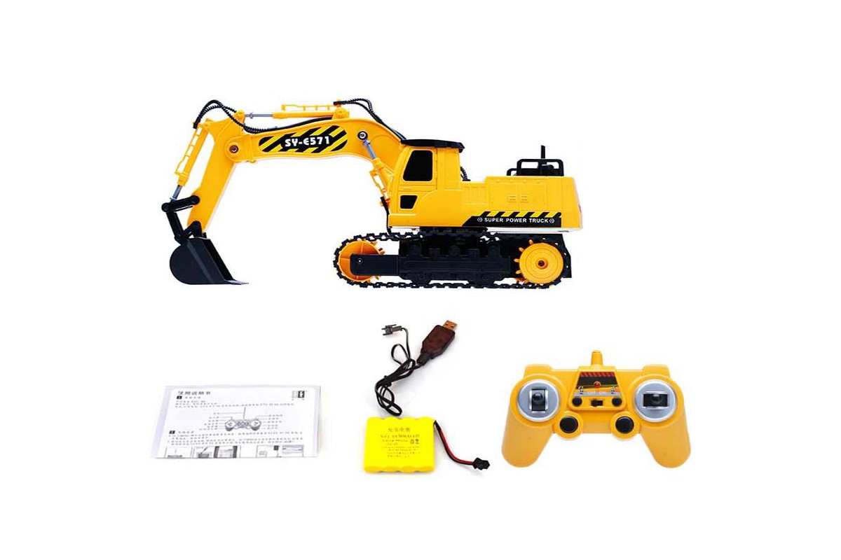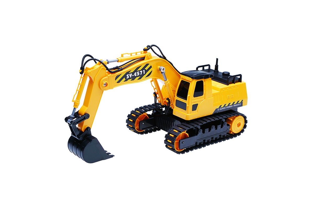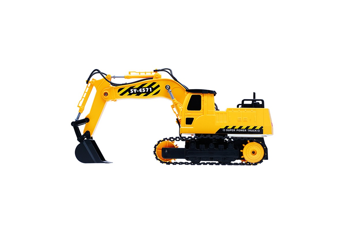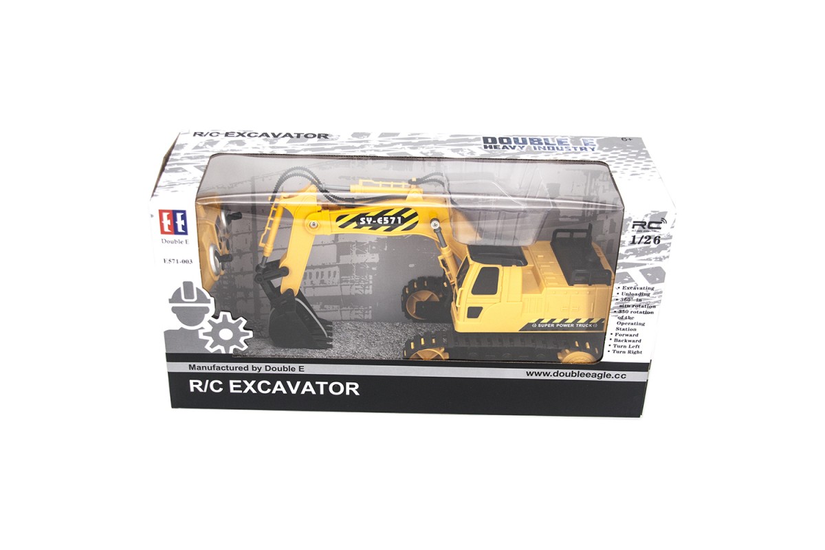 Радиоуправляемый экскаватор Double Eagle 1:26 2.4G - E571-003 - это миниатюрная копия настоящего экскаватора. Пульт имеет два рычага для управления направлением движения, кнопки для поворота башни, зачерпывания и разгрузки. Башня поворачивается на 360 градусов. У модели резиновые гусеницы. Есть свет.