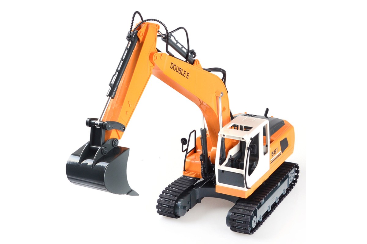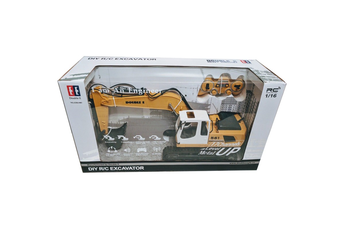 Радиоуправляемый экскаватор Double Eagle 1:16 RTR со звуковыми эффектами 2.4G - E561-003 — это копия настоящего экскаватора, отличный пример современной и функциональной строительной техники для детей. Модель подходит для работы на небольшой домашней стройке и на улице, так как основа передвижения Double Eagle E561-003 — это гусеницы. Радиоуправляемый экскаватор Double Eagle прекрасно передвигается не только по ровным поверхностям, но и например, по песку. Сам экскаватор выполнен в классическом для стройки жёлтом цвете. Корпус игрушки отличается высокой ударопрочностью. Важной особенностью этой игрушки является конструкция ковша. Принцип движения полностью повторяет настоящую технику. Ковш двигается вперёд и назад, перемещается вверх/вниз, может зачерпывать. Такая игрушка непременно станет центром любой игрушечной строительной площадки. Экскаватор Double Eagle E561-003 выполнен в масштабе 1:16. Управляется модель экскаватора с пульта, на котором есть отдельные контроллеры движения самого экскаватора и отдельно ковша.