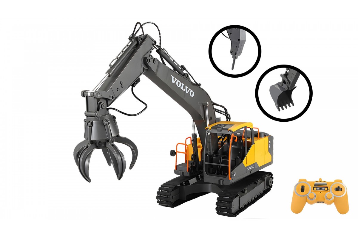 Комплектация: Экскаватор, пульт управления, аккумулятор, USB зарядное устройство, руководство пользователя, захват, гидромолот, мячик.