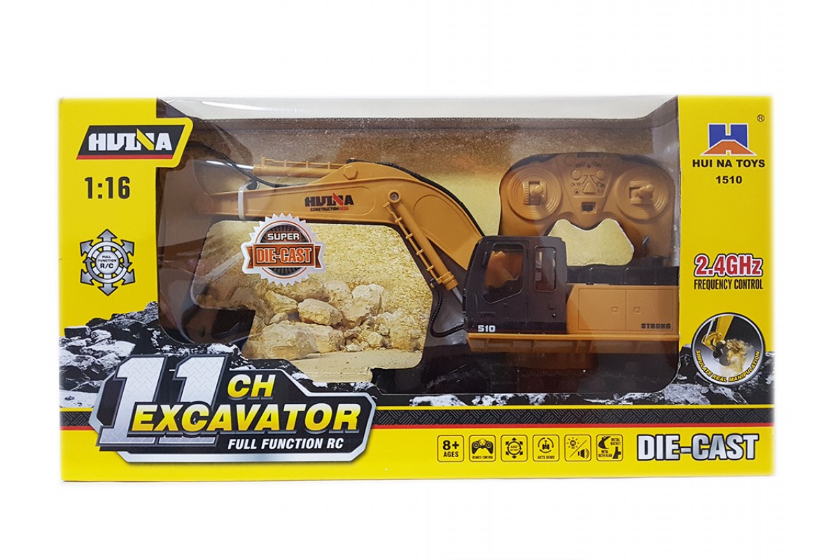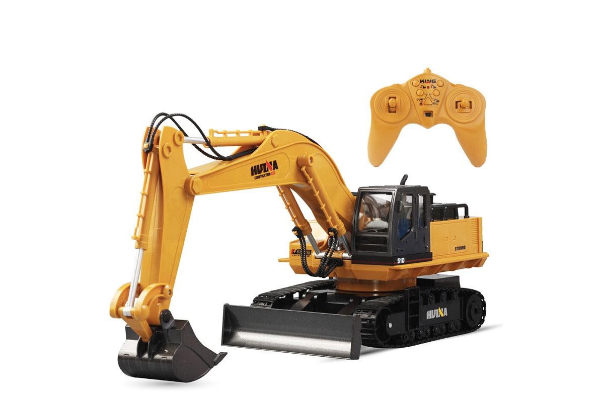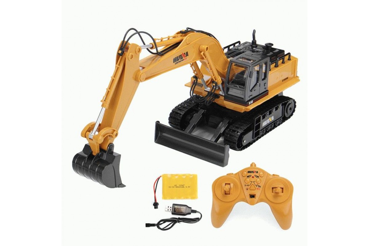 Игрушка HUI NA TOYS может копать ямы, разгребать землю и мусор, а также возить стройматериалы. Этот радиоуправляемый экскаватор оснащен функциональным поднимающим механизмом. Стрела с ковшом с легкостью движется вверх-вниз. Радиоуправление осуществляется на частоте 2,4 ГГц в радиусе до 50 м. Заряда встроенного аккумулятора емкостью 700 мАч и мощностью 4,8 В хватает на 20 минут бесперебойной работы.
