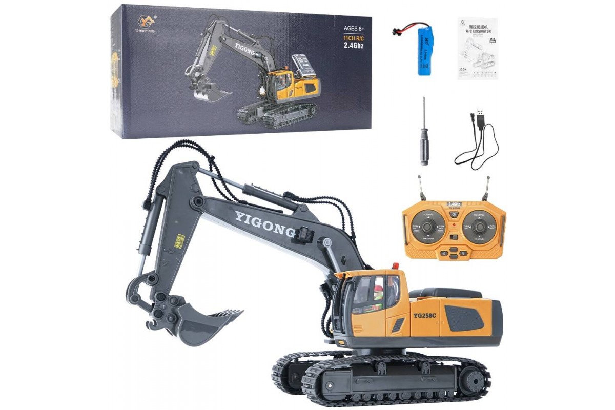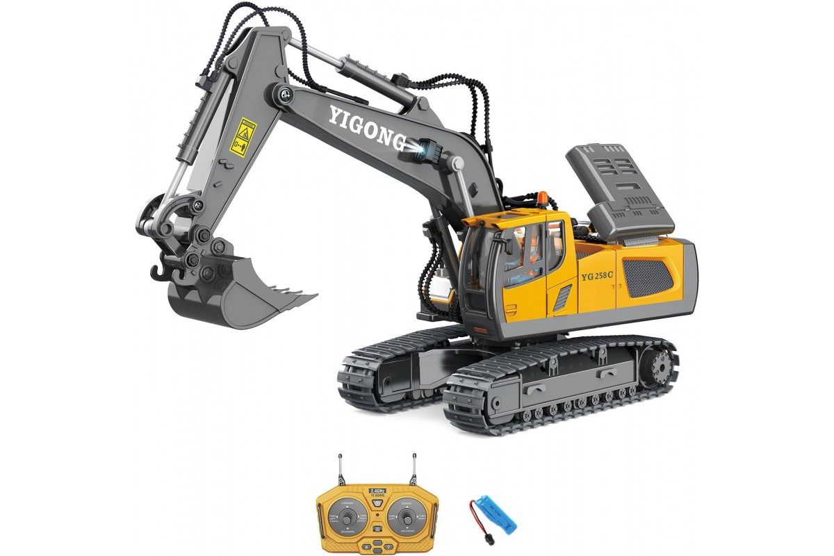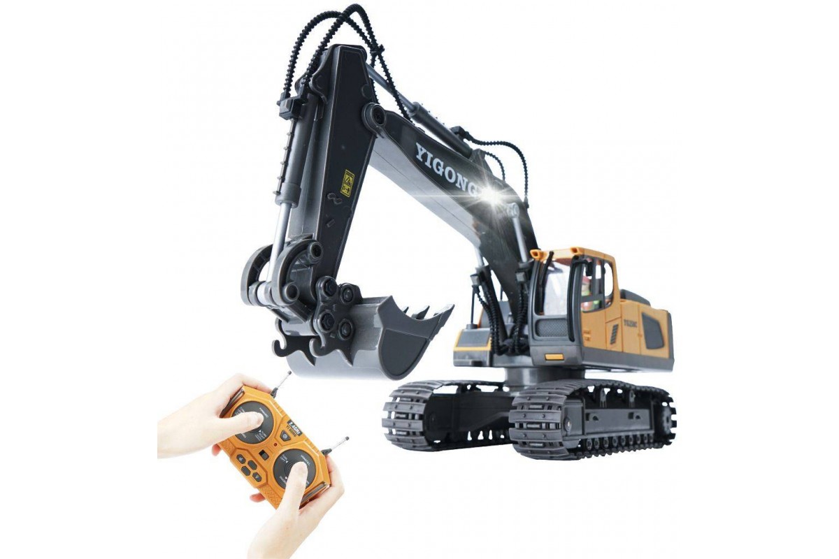 Радиоуправляемый экскаватор Huina / YiCong (свет, звук, металл ковш, акб, 1:20) - BC1043 - это копия настоящего экскаватора, отличный пример современной и функциональной строительной техники для детей. Модель подходит для работы на небольшой домашней стройке и на улице, так как основа передвижения - это гусеницы. Радиоуправляемый экскаватор прекрасно передвигается не только по ровным поверхностям, но и например, по песку. Сам экскаватор выполнен в классическом для стройки оранжевом цвете. Корпус игрушки отличается высокой ударопрочностью, ковш выполнен из металла. Важной особенностью этой игрушки является конструкция ковша. Принцип движения полностью повторяет настоящую технику. Ковш двигается вперёд и назад, перемещается вверх/вниз, может зачерпывать. Такая игрушка непременно станет центром любой игрушечной строительной площадки. Экскаватор выполнен в масштабе 1:20. Управляется модель экскаватора с пульта, на котором есть отдельные контроллеры движения самого экскаватора и отдельно ковша.